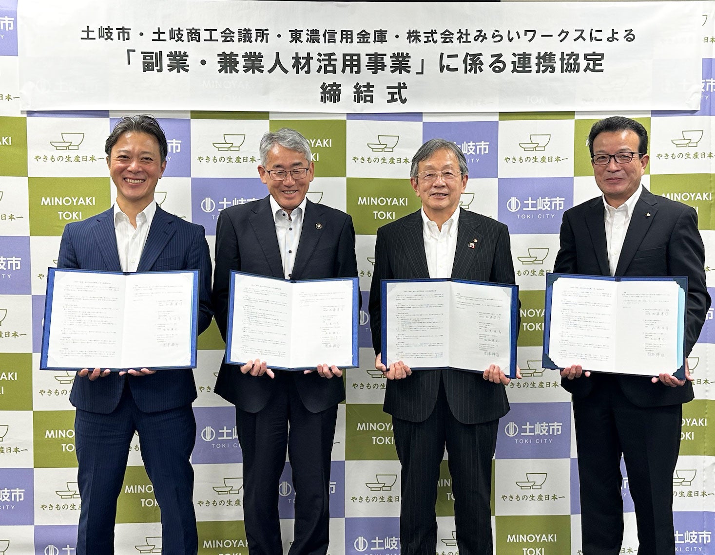 みらいワークス、岐阜県土岐市、土岐商工会議所、東濃信用金庫と連携協定締結