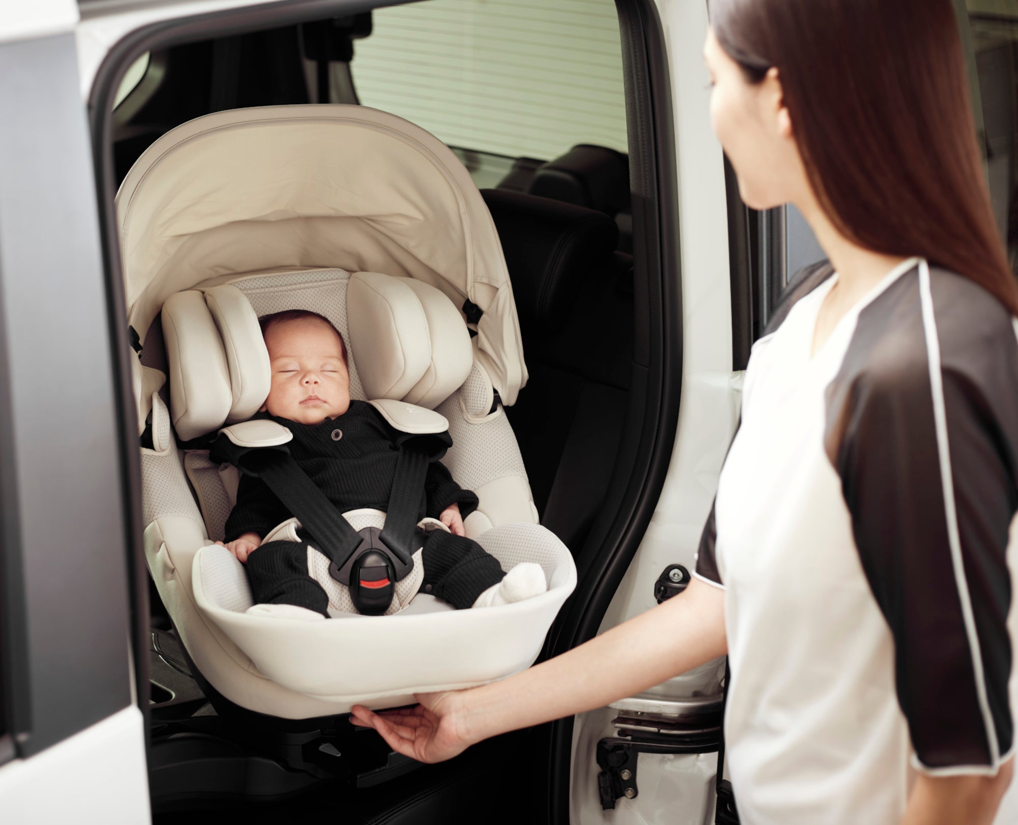 日本初の新機構※ 「360°回転×スライド×スイング」を搭載。乗せ降ろし時、腰の負担を14%軽減するチャイルドシートを発売|エールベベ