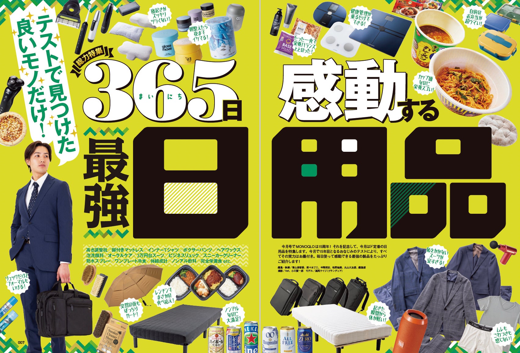 今月号でMONOQLOは15周年!それを記念して、今月はド定番の日用品を特集します。今月で15年目となるおなじみのテストにより、すべてその実力はお墨付き。毎日使って感動できる最強の製品をたっぷりご紹介します!