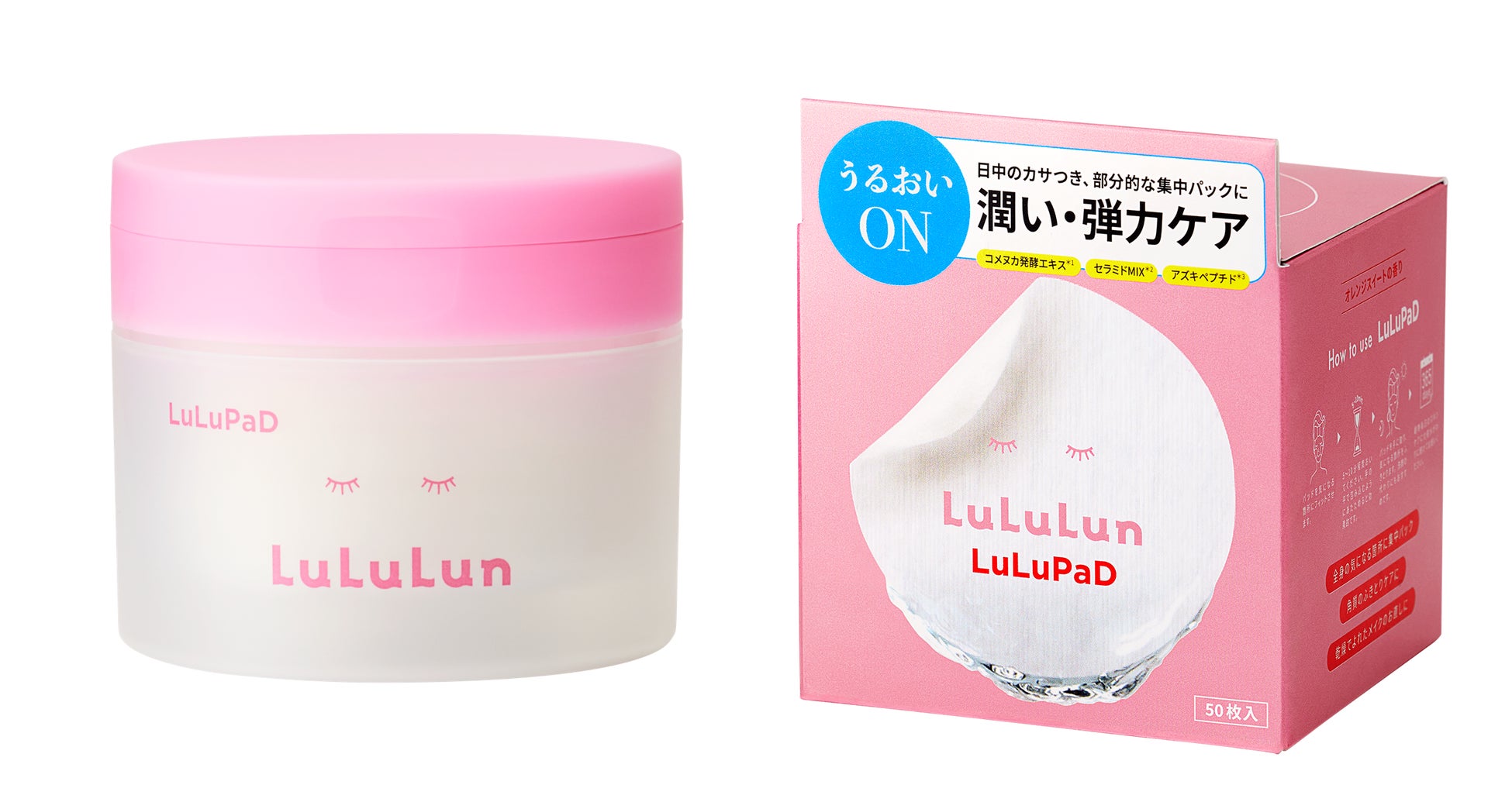 「ルルルン トナーパッド うるおいON」…部分的な乾燥や、メイク前にピンポイントな保湿を求めるかたへ。密着性の高いシートと、5種のセラミド*2を配合したとろみのある濃密なテクスチャーを採用し、気になる箇所へピタッとうるおいをONします。