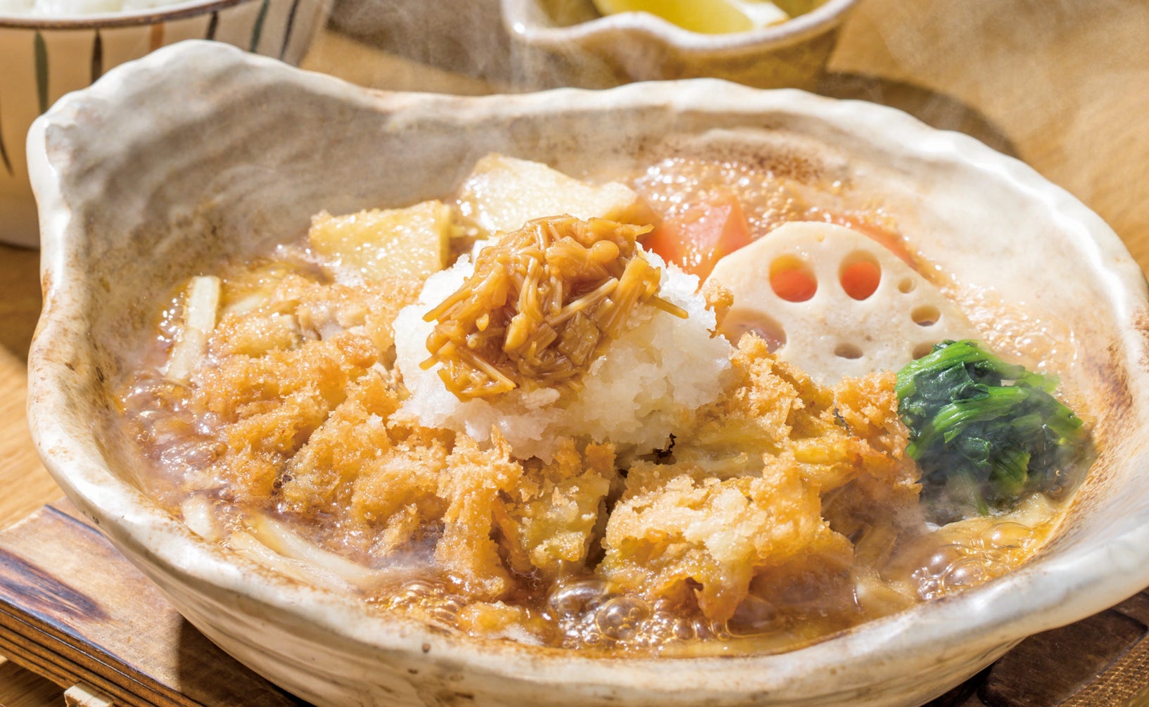 大根おろしとなめ茸が決め手の、こころ温まるほっこりするおいしさ。