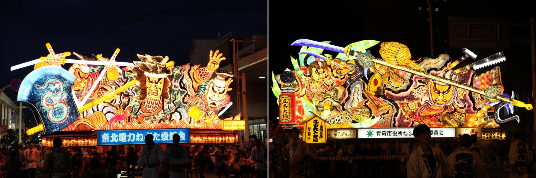 第1弾の「青森ねぶた祭」は、青森市で毎年8月に行われる東北三大祭の一つで、1980年に国の重要無形民俗文化財に指定された伝統ある祭です。毎年20数台もの大型ねぶたが市内を練り歩き、200万人を超える人出でにぎわいます。幅約9m、奥行き7m、高さ5m、重さ約4トンに及ぶねぶた作りには、高い技術を持つねぶた師の存在が欠かせませんが、人口減少とともにねぶた師の担い手も少なくなっています。そして時間と手間暇をかけて作り上げたねぶたは、6日間にわたって行われた祭の後、引き取られるもの以外は解体し、廃棄されている現状があります。