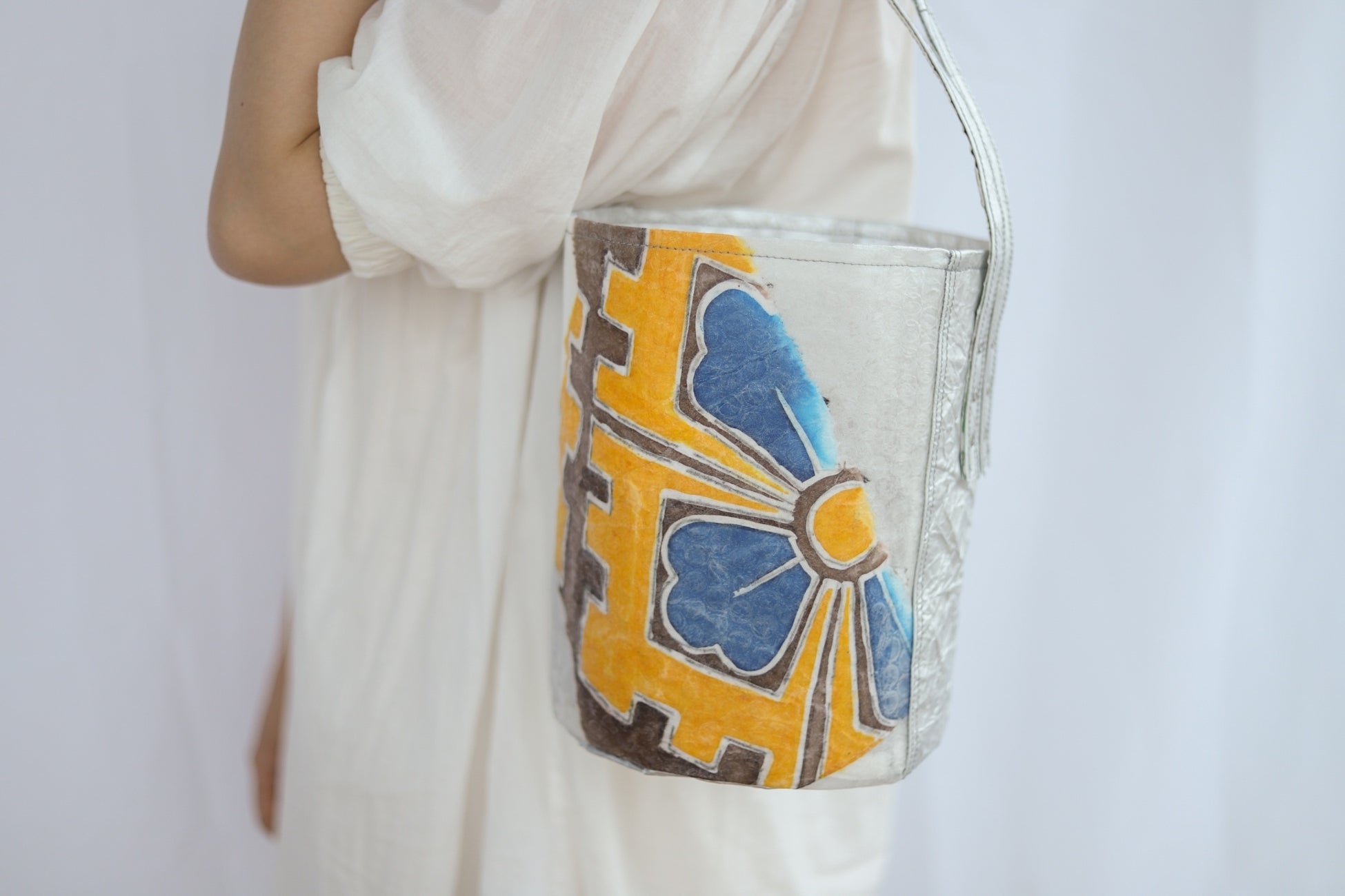 豆乳パックと青森ねぶたの和紙、そして緩衝材のプチプチをアップサイクルしたバッグ。内側から光を入れるとよりねぶたの美しさを感じることができ、インテリアとしても楽しめます。