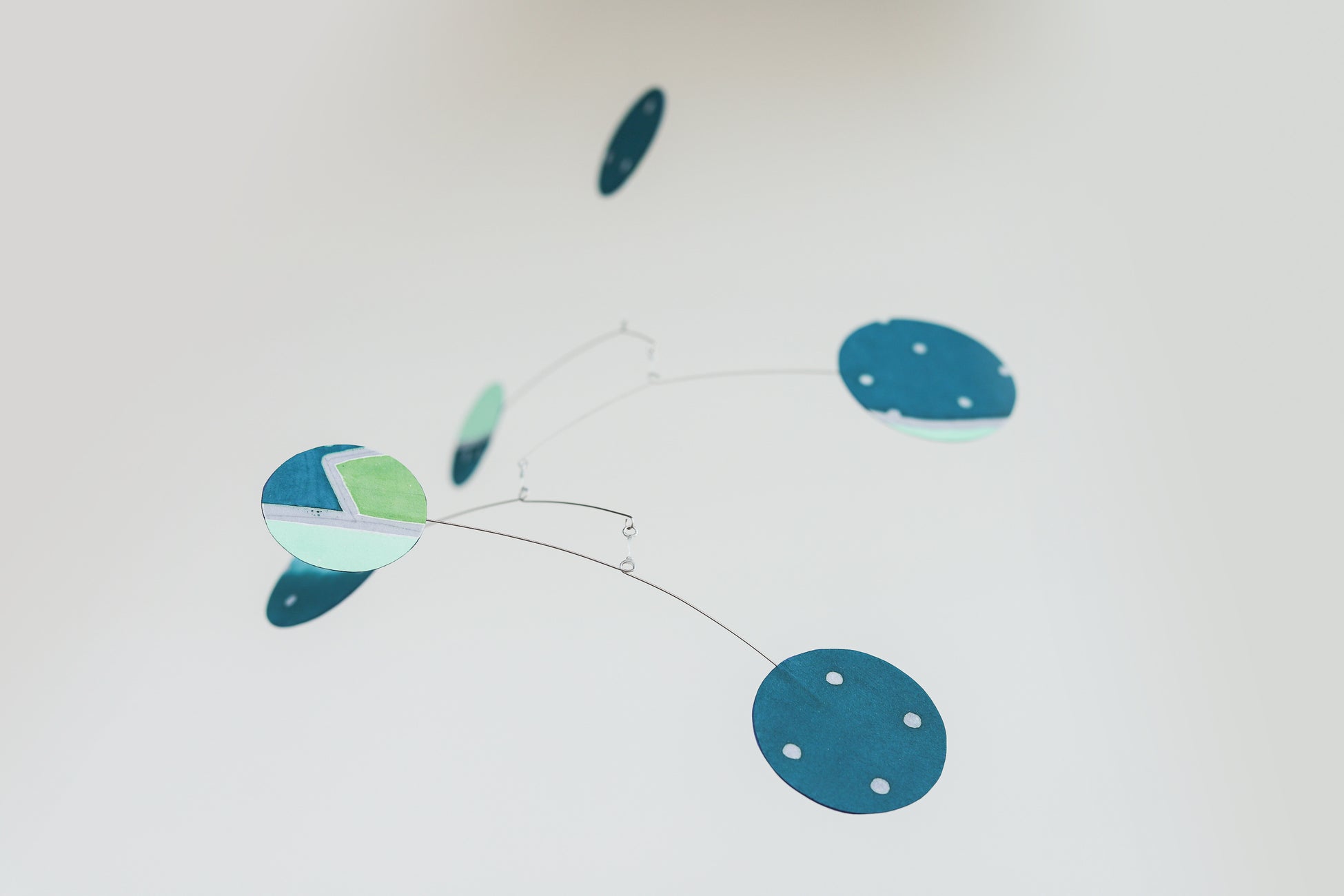 ねぶたの彩り豊かな和紙を活かし、祭の躍動感を表現したモビール。