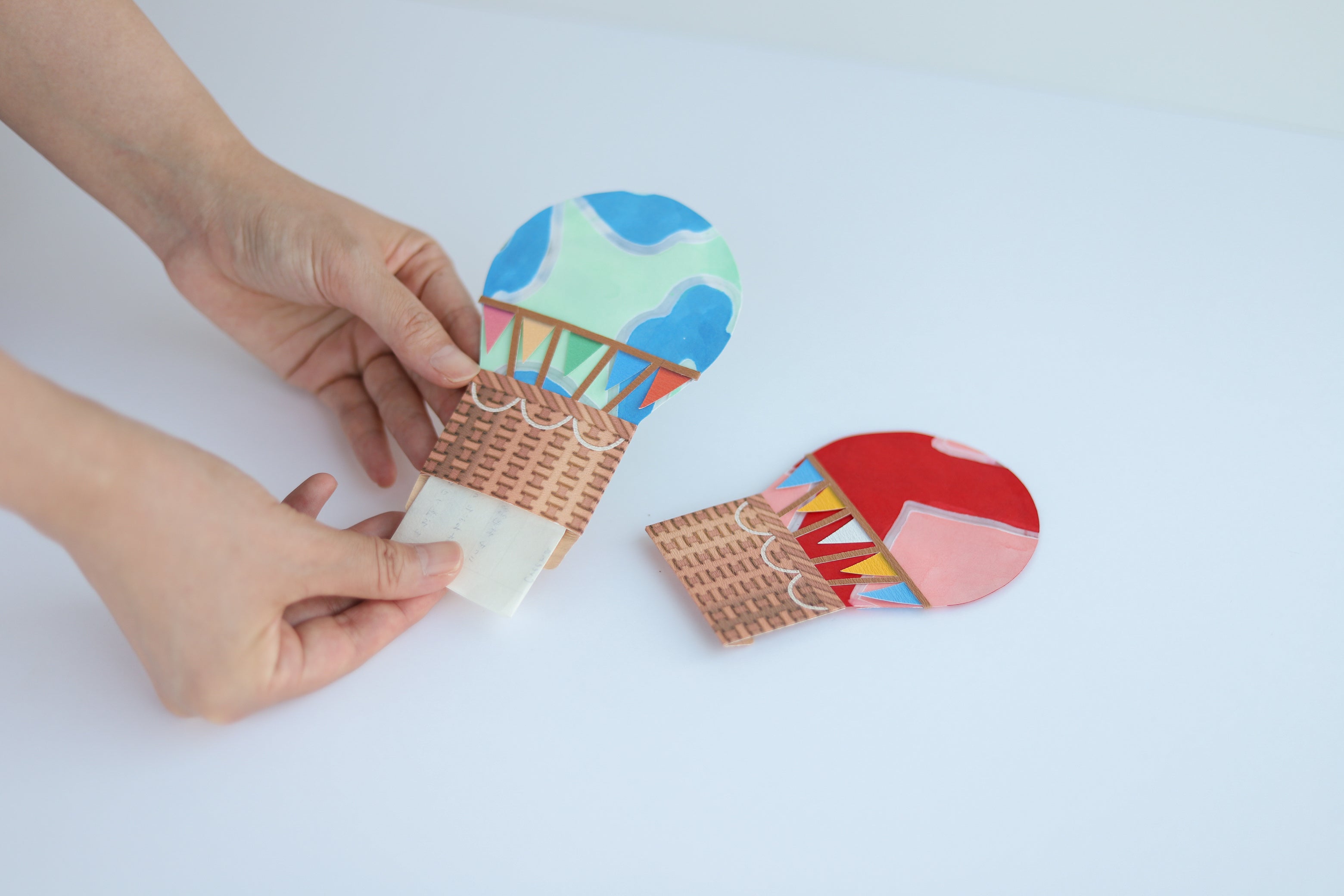 「わんつか」とは青森の方言で、ちょっと・ほんの少しという意味。ねぶたの和紙の「わんつか」を乗せた 気球モチーフのぽち袋です。