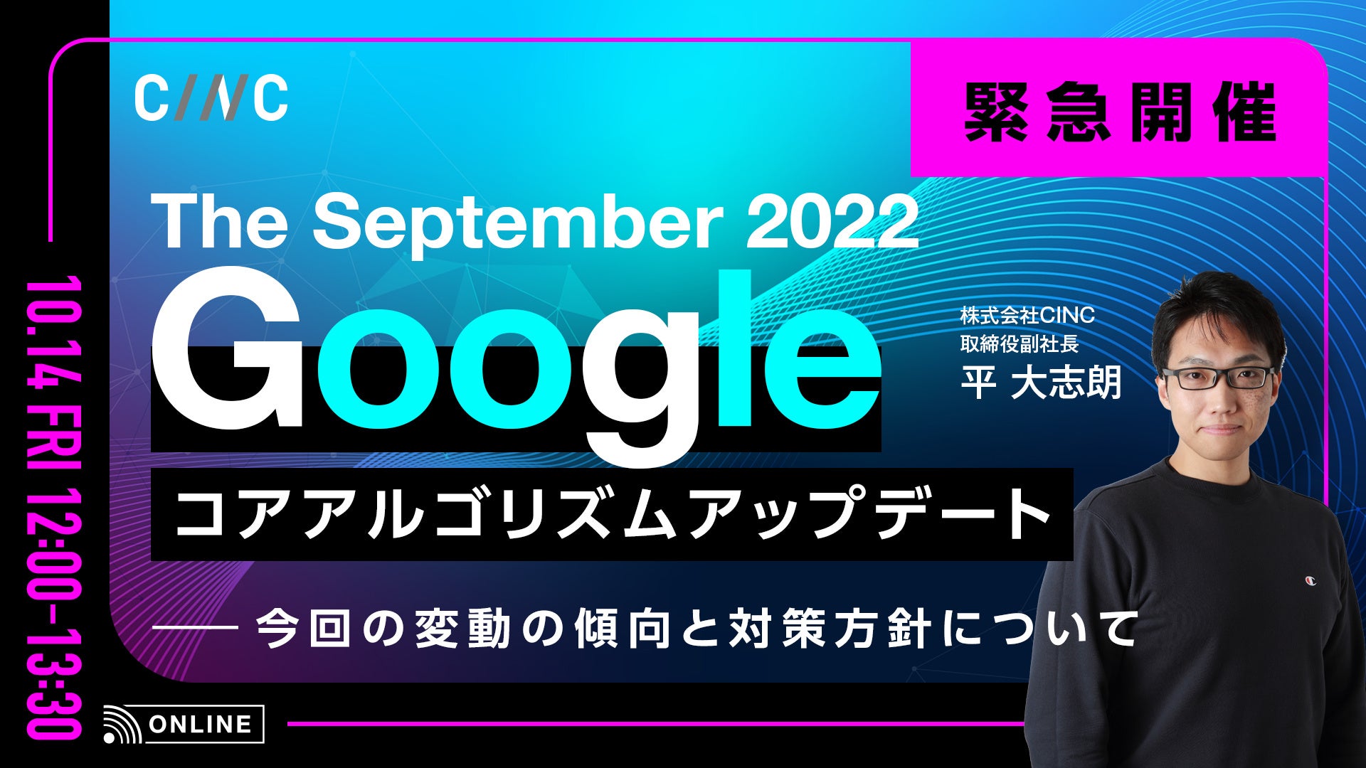 【株式会社CINC】2022年9月Googleコアアルゴリズムアップデートに関するオンラインセミナーを10月14日に開催