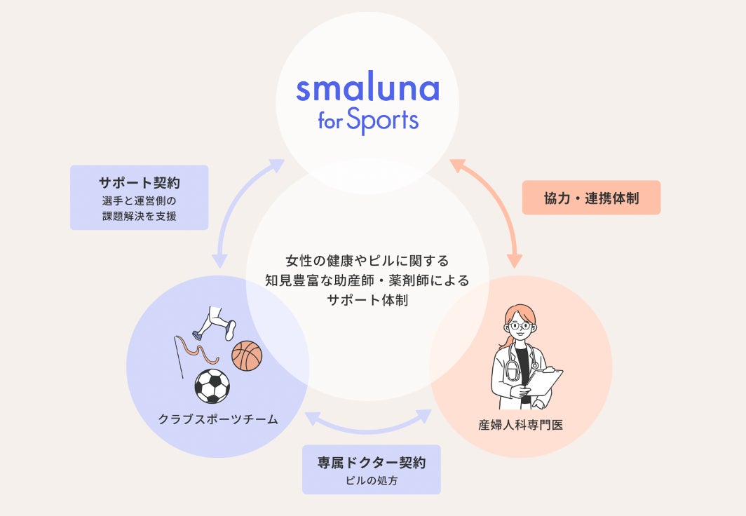 このような現状から、婦人科領域に特化したアセットを活かし、オンライン診察という手段を使い、必要なタイミングでいつでも医師や助産師、薬剤師などの医療専門家に気軽に相談してもらえるよう環境を整えるべく「スマルナ for Sports」を提供します。選手の皆さまに、科学的根拠に基づいた情報ほか、ピルについての正しい情報を届け、メディカルコミュニケーションを図ってまいります。