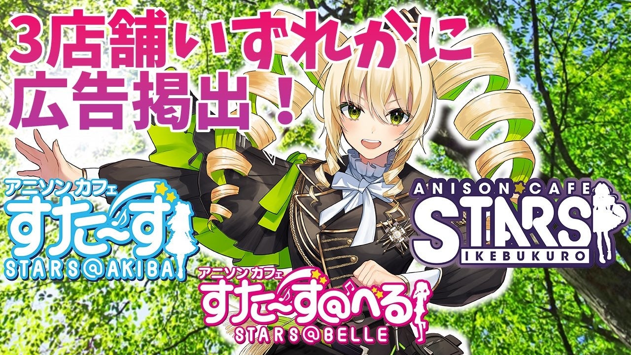 アニソンカフェ「すた~ず」の店内にVチューバーの広告を無償で掲示。4月29日14:00より横浜・秋葉原・池袋の全店舗にて開始
