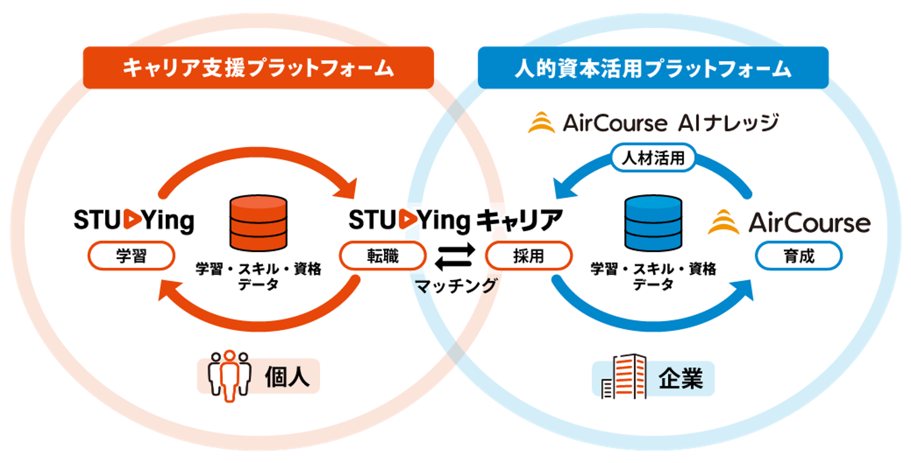 当社では従来、法人向けのeラーニングサービス「AirCourse ( https://aircourse.com/ ) 」および、ナレッジ共有サービス「AirCourseナレッジ」をご提供することで、企業の人材育成と組織ナレッジ活用を支援してまいりました。これらと、今回リリースする生成AIサービス「AirCourse AIナレッジ( https://aircourse.com/ai-knowledge/ ) 」を組み合わせることで、社員の皆様が生成AIを活用してより効率的に業務を行うことが可能になります。さらに、組織全体で生成AIの活用ノウハウを共有することで、全社的な生産性向上が実現します。当社では、今後、企業の人材を最も重要な資本である「人的資本」と捉え、人材育成・ナレッジ共有・AI活用による生産性向上を支援する『人的資本活用プラットフォーム』を展開してまいります。