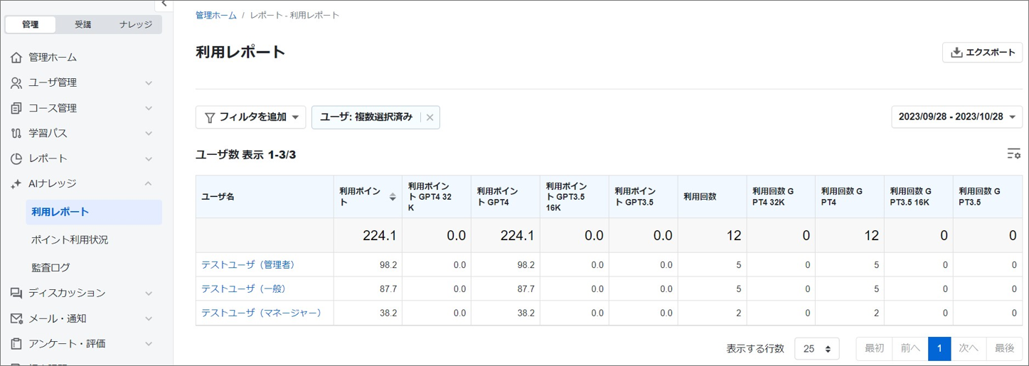 管理者は、生成AIの利用状況をモニタリングしたり、不適切な利用がないかを監査ログで確認することができます。
