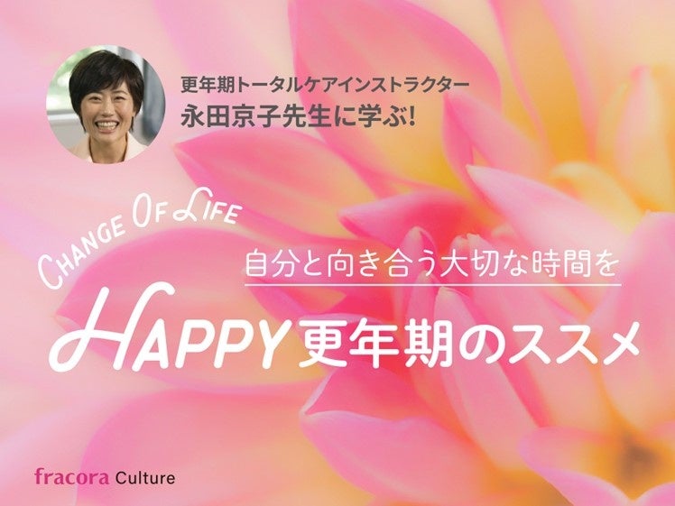 今回の“fracoraカルチャー”では、書籍やYoutubeチャンネルが人気の更年期トータルケアインストラクター永田京子先生をお招きし、「HAPPY更年期のススメ」についてお話しいただきます。是非、ご覧ください!