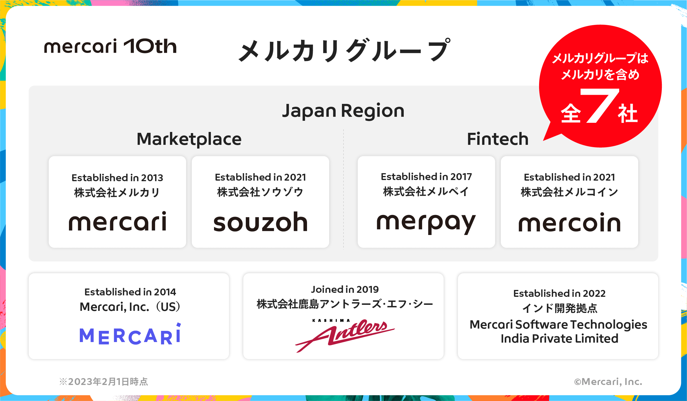株式会社メルカリ(以下、メルカリ)は、2013年2月1日の会社設立から10年となる本日、新たに策定したグループミッションを公開したことをお知らせいたします。これに併せ、グループミッションにも掲げられている「Unleash」(可能性を広げる)をキーワードに、創業10年を迎えるにあたってのCEOメッセージ、これまでの「メルカリのあゆみ」をまとめたインフォグラフィックスを掲載した特設サイトも開設いたしました。