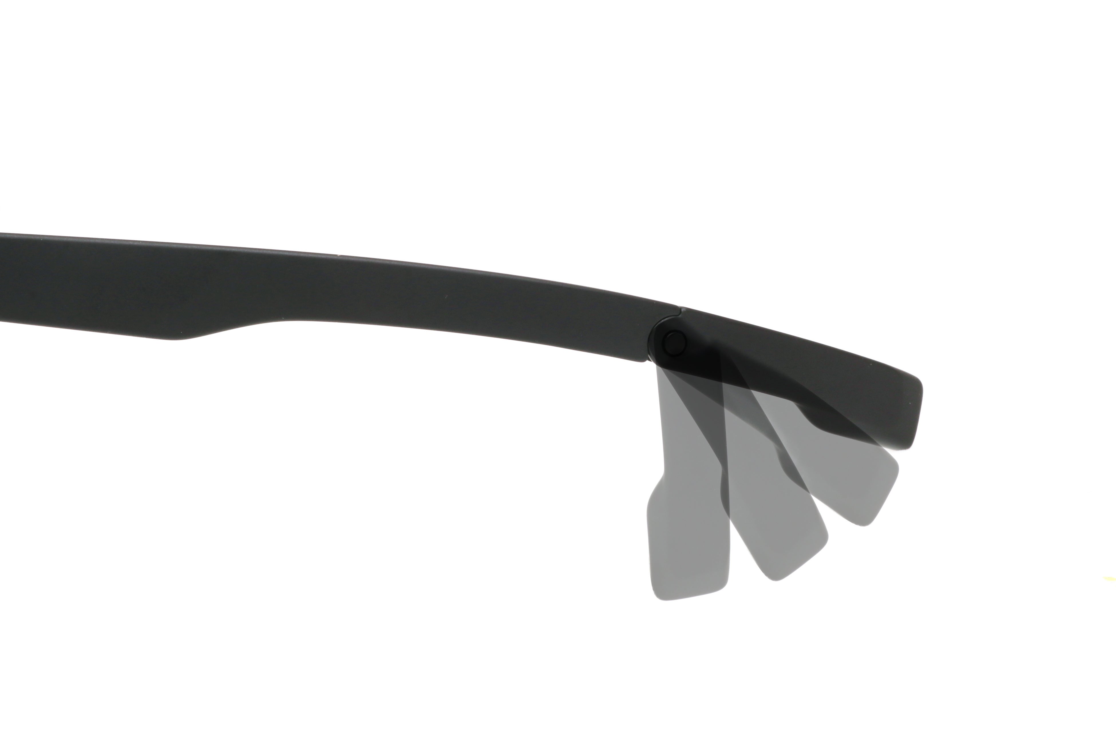 素早く調整できる4段階の可動式。薄く弾力性のある設計で締め付け感のないかけ心地を実現。