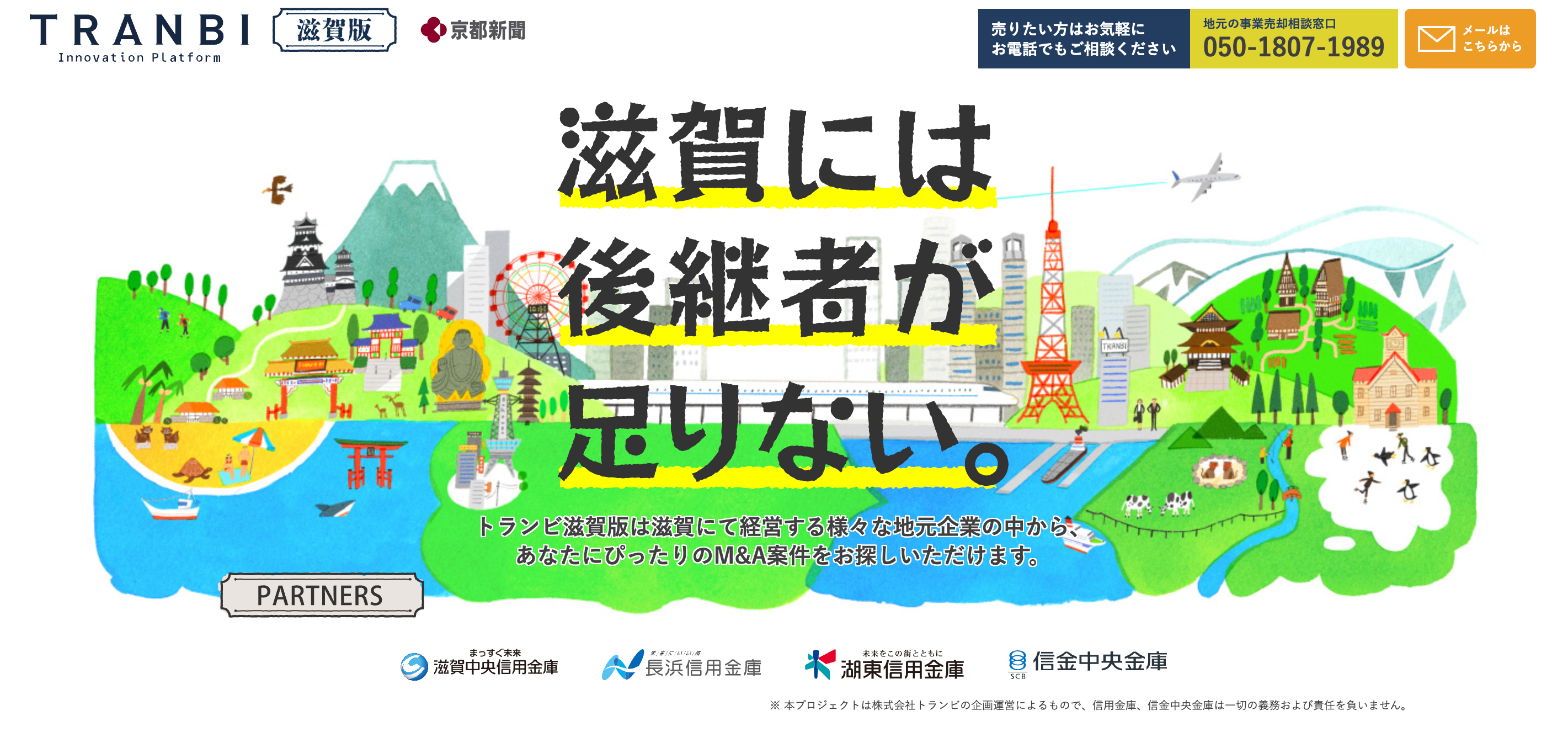 国内最大級の事業承継・M&AプラットフォームTRANBI(トランビ)、「地域版メディアプロジェクト」滋賀県版ページを開設!