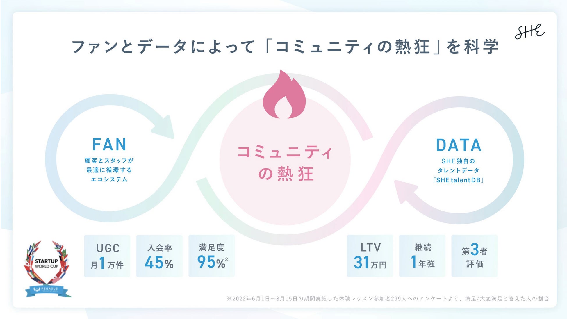 また、さらに個々に合わせたサービス提供を実現するため、顧客データベースとAIの活用により、一人一人の深層レベルの心理データや性格タイプを可視化し、タレントデータベースとして最適なキャリアマッチングを実現して参ります。テクノロジーを活用して、SHEの強みである「コミュニティの熱狂」を再現、拡大していきます。