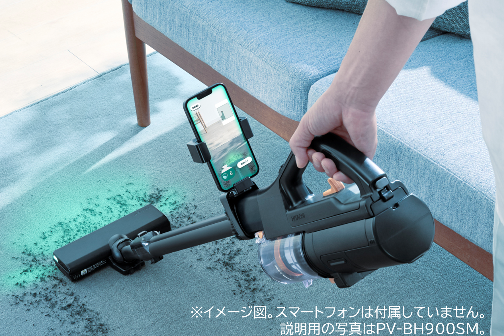 本製品は、拡張現実(AR)の技術を活用し、掃除機に装着したスマートフォンの画面で床面の掃除した箇所や軌跡を可視化(*6)するとともに、楽しく掃除ができる演出を加えた「ARおそうじ」アプリ(*7)(*8)に対応する。掃除で楽しさや達成感を得られることに加え、掃除の軌跡を可視化することでどこを掃除したかわかり、上手に掃除ができるようにサポートする。