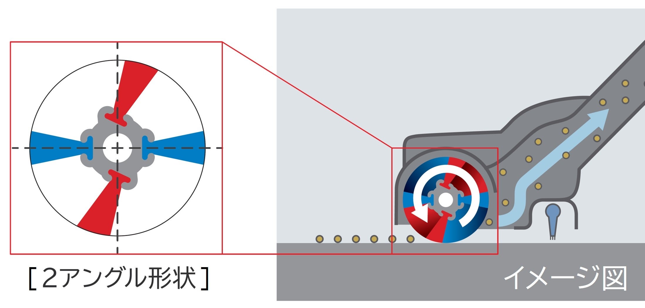 本製品では、小型・軽量できわだつパワーを生み出す「ジェット 3D ファンモーター」を搭載。ファンを三次元形状(斜流ファン)にし、後方の固定翼と併せて空気の流れを効率よく制御する。モーターには「極異方4極マグネット」を採用し高効率を実現、さらに強度を高めた構造にすることで高速回転を可能にした。これにより従来から風量を約10%(*5)向上させ、きわだつパワーを実現。小型・軽量ときわだつパワーの両立を実現した。