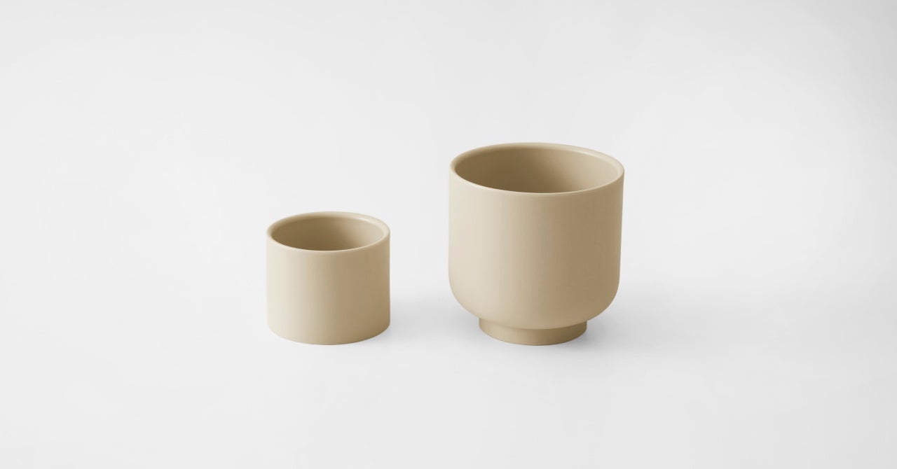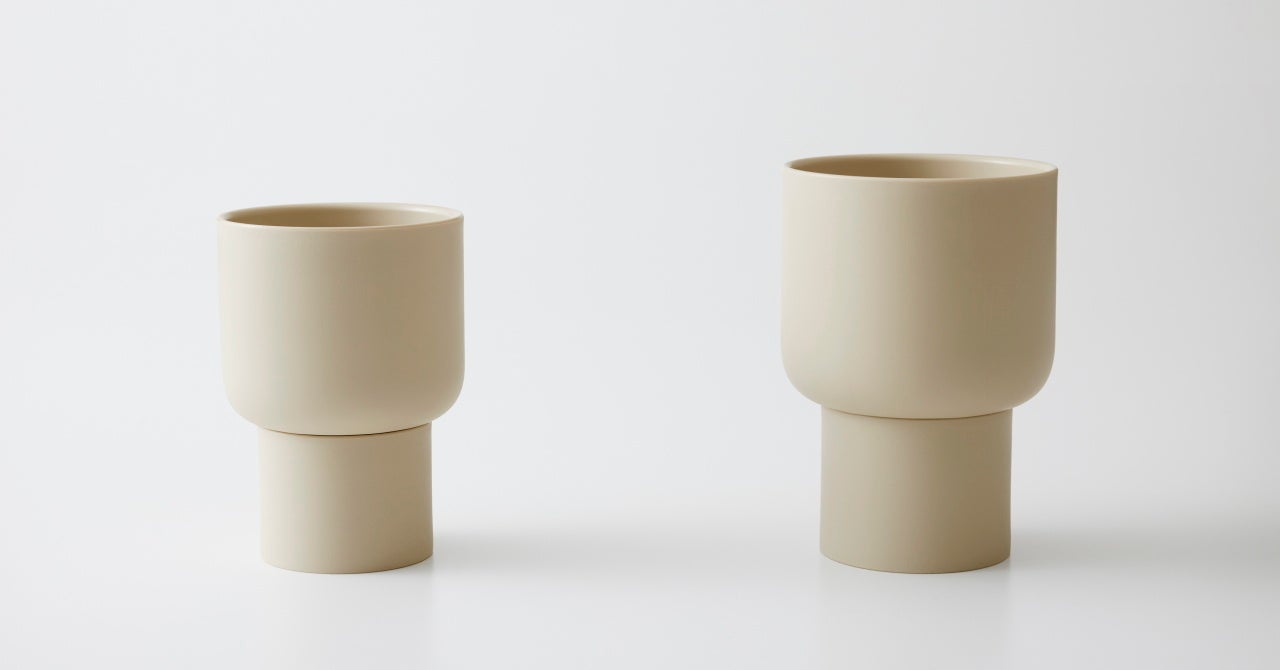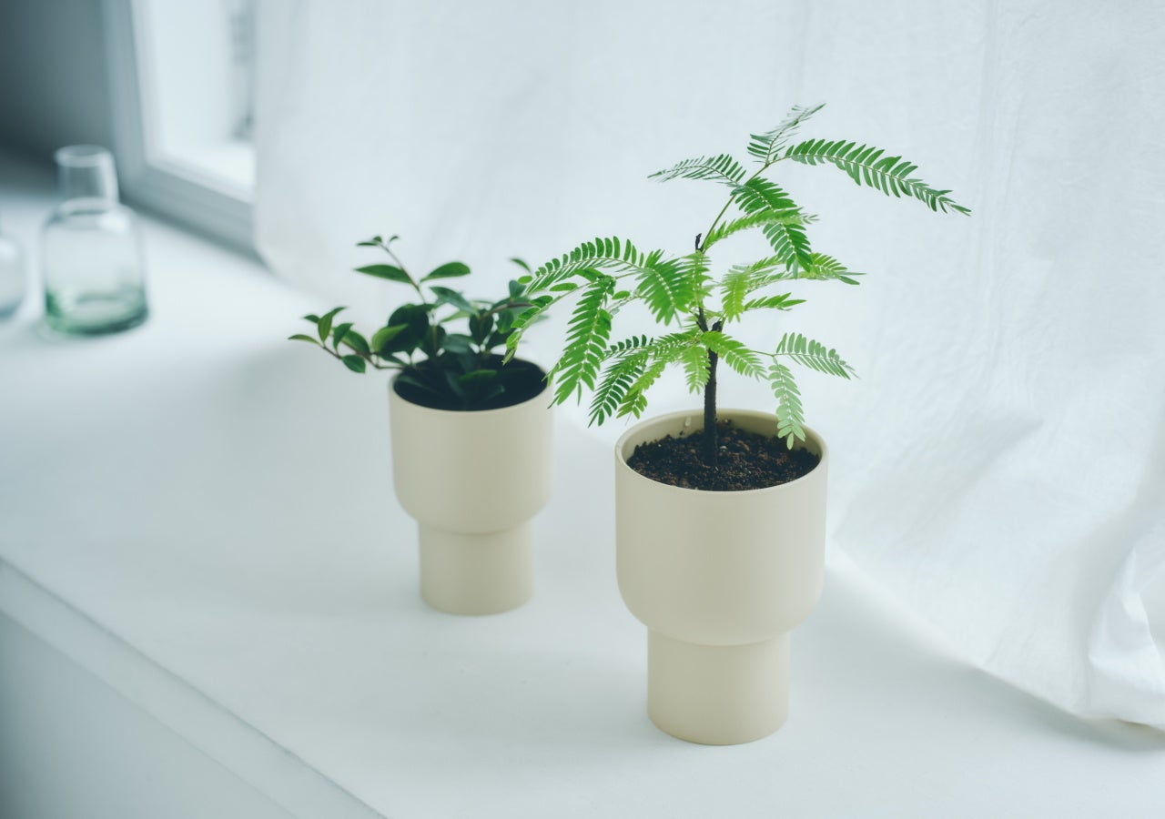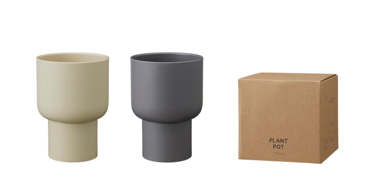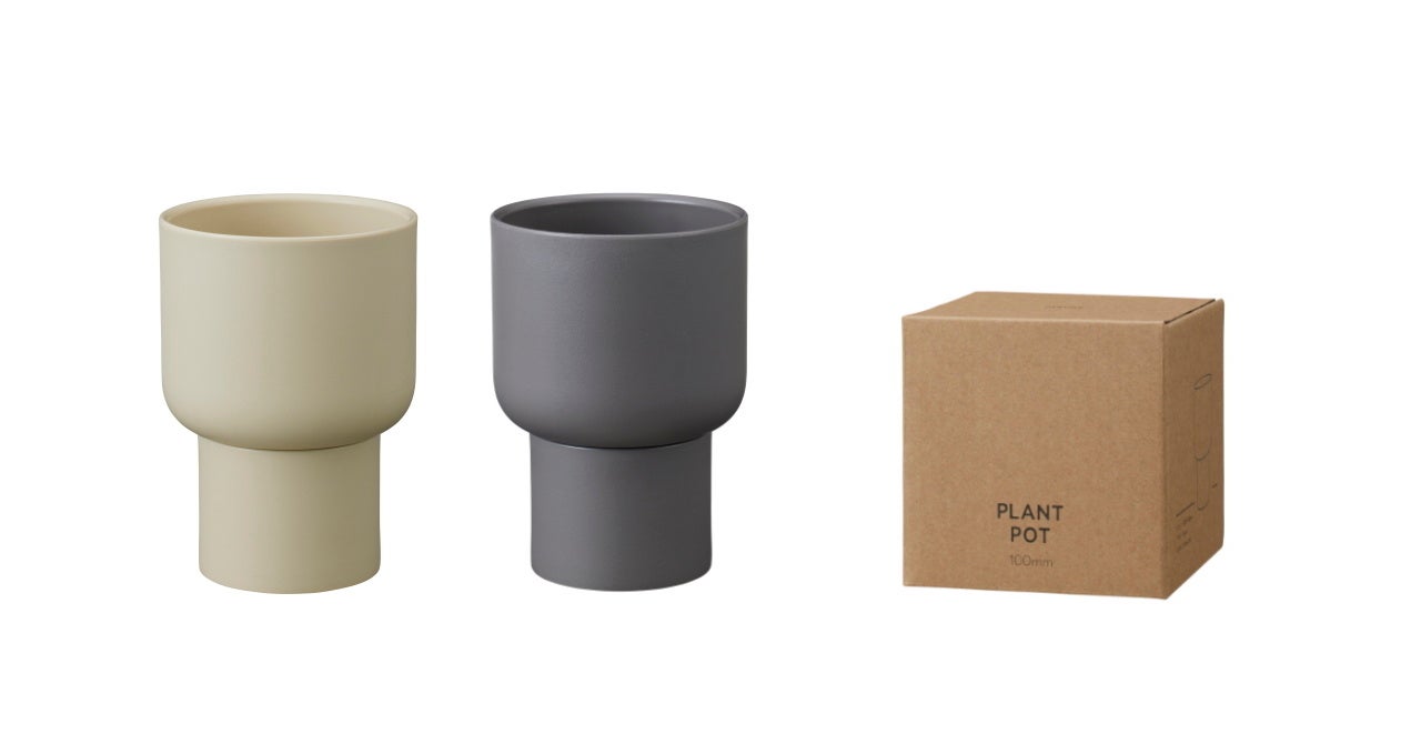直径10cmと11.5cmの2サイズ、それぞれベージュとグレーから選べます。テーブルの上、本棚の上、窓際にと、インテリアを増やすような感覚で、植物のある暮らしを気軽に始められます。