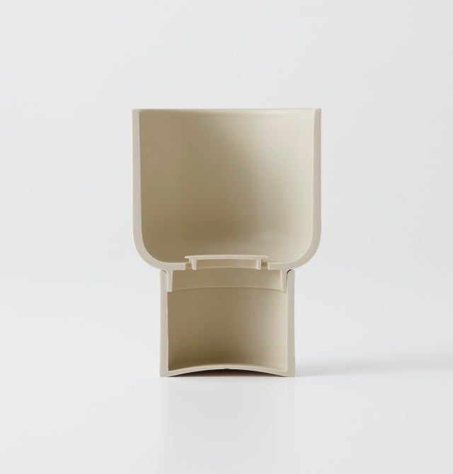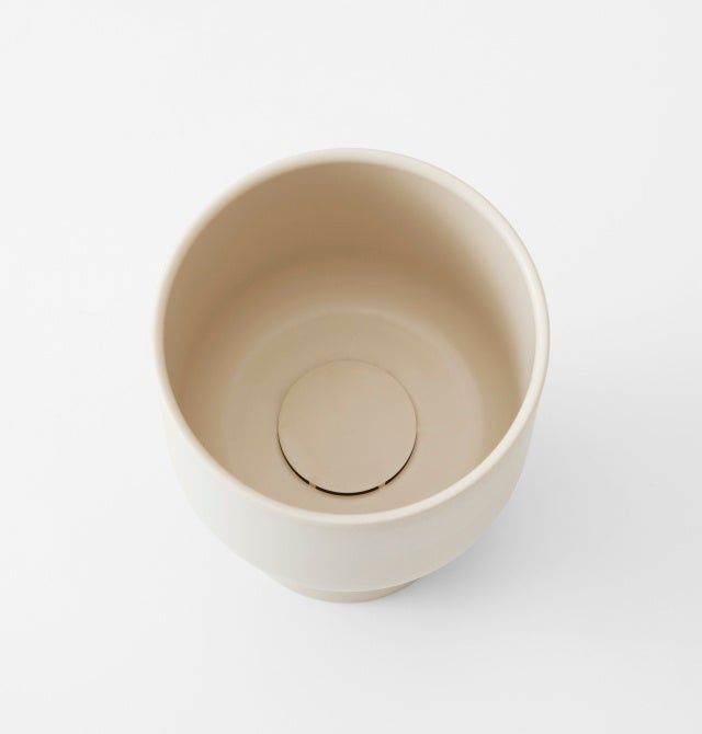 「プラントポット」は、コップのような水受けがついた室内用の植木鉢です。水やりの後にしみ出た水分が水受けにしっかり溜まり、簡単に捨てられます。鉢底の排水口はスリット状になっており、植え替えの際に鉢底ネットがいりません。また樹脂製で軽く、水受けに高さがあるので持ちやすく、気軽に持ち運べます。