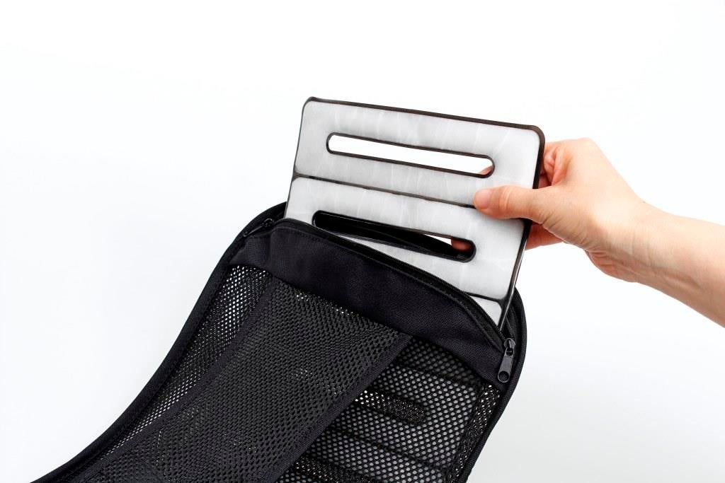 リュックの背中に装着できる「アイスメッシュフレーム」