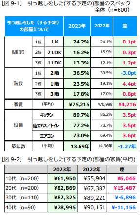 引っ越しをした(する予定の)賃貸物件のスペックについて聞き、昨年度と比較をしました。