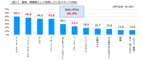 1. Z世代の情報源は「SNS」が約7割