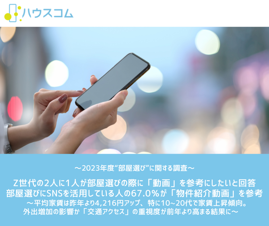 ~2023年度“部屋選び”に関する調査~Z世代の2人に1人が部屋選びの際に「動画」を参考にしたいと回答部屋選びにSNSを活用している人の67.0%が「物件紹介動画」を参考
