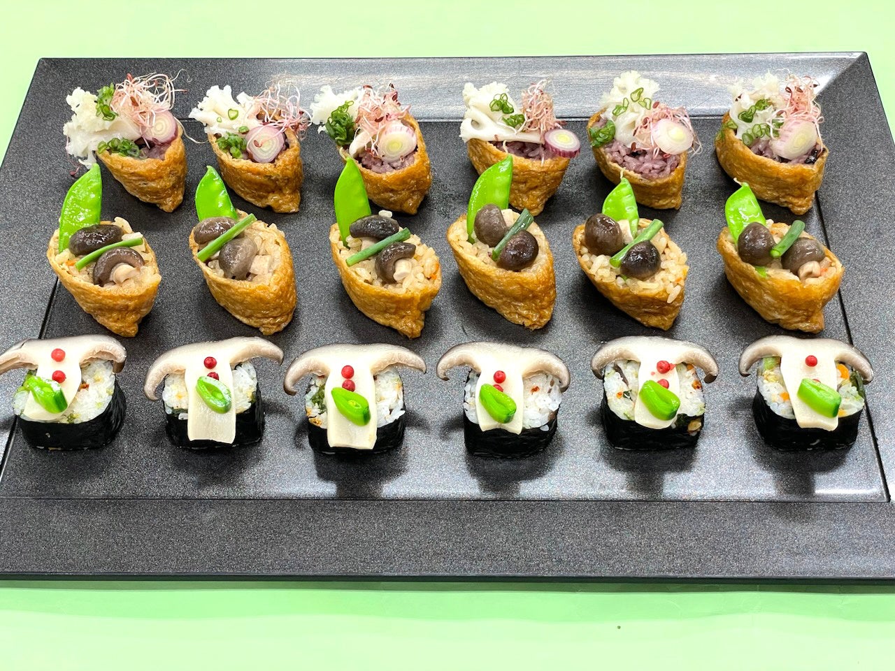 ちらし中巻寿司、伊豆の黒米寿司、伊豆のかやく寿司の創作寿司が並びます。見た目も良く、寿司ネタとの相性も抜群な一品です。