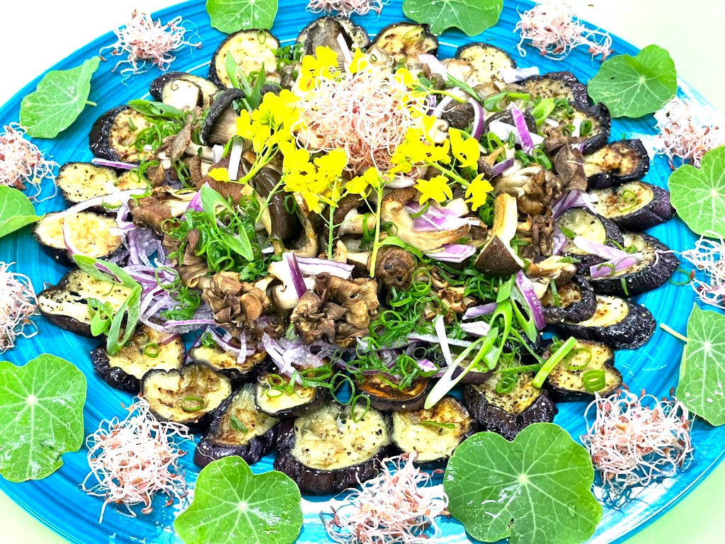 「きのこ」と茄子の食材の共演は秋の味覚の傑作です。豊かでコクのあるオニオンソースが食材たちに深い味わいをもたらします。