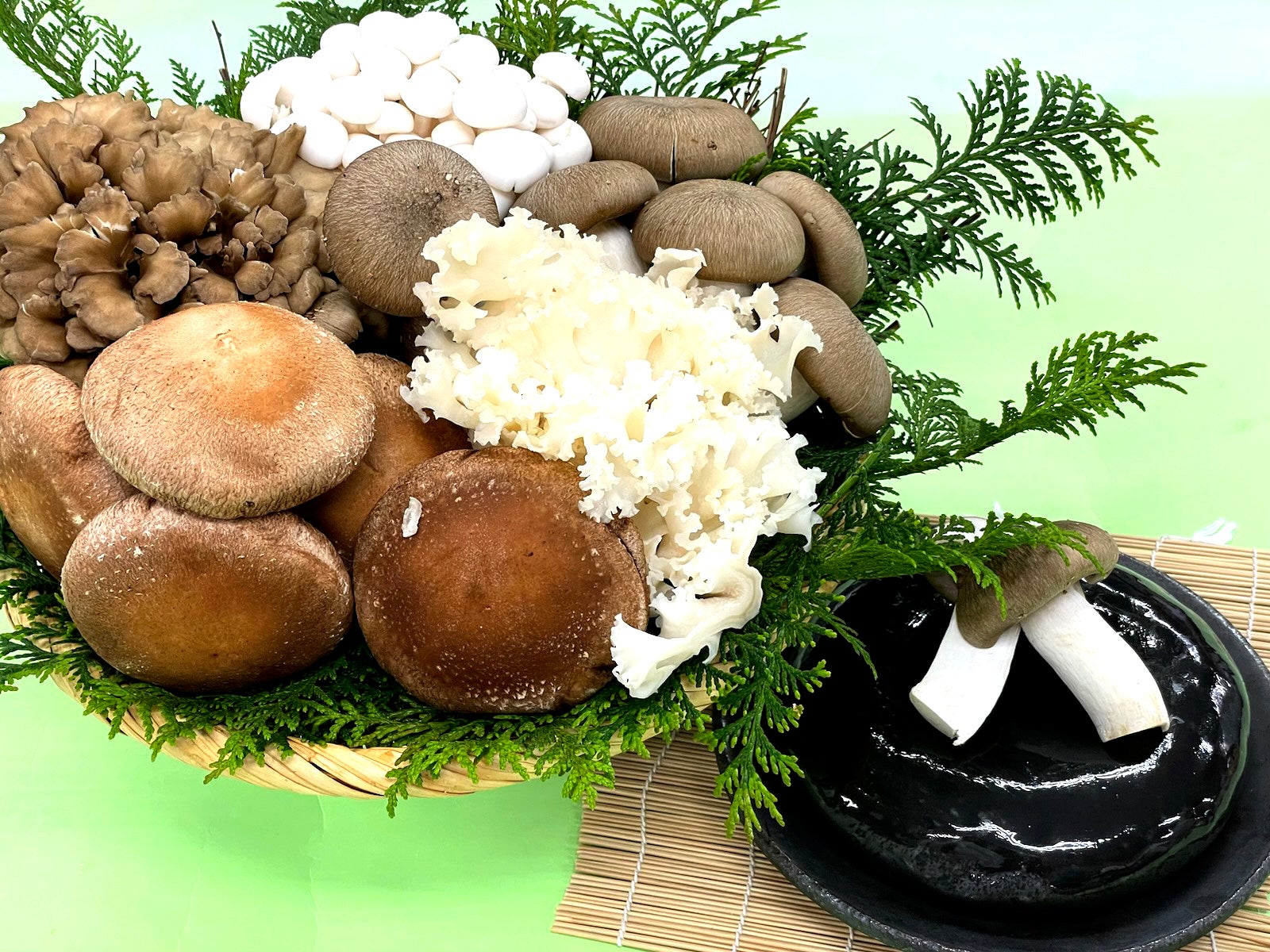 軸長茸・とき色平茸・舞茸・えりんぎ・白木野子・ブナピー・はなびら茸
