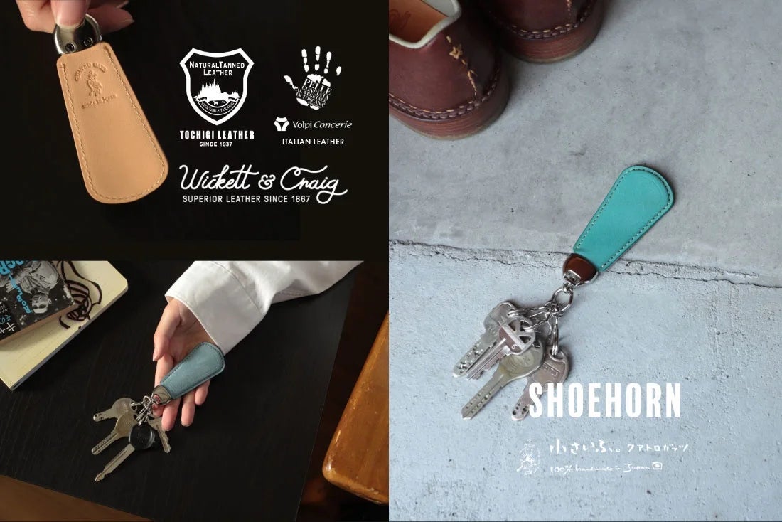 携帯性に優れたシューホーンを使えば、靴の脱ぎ履きをサッと行うことができ、キーリングには車や家の鍵をつけることができるので、日常の必需品をスマートに持ち歩いていただけます。