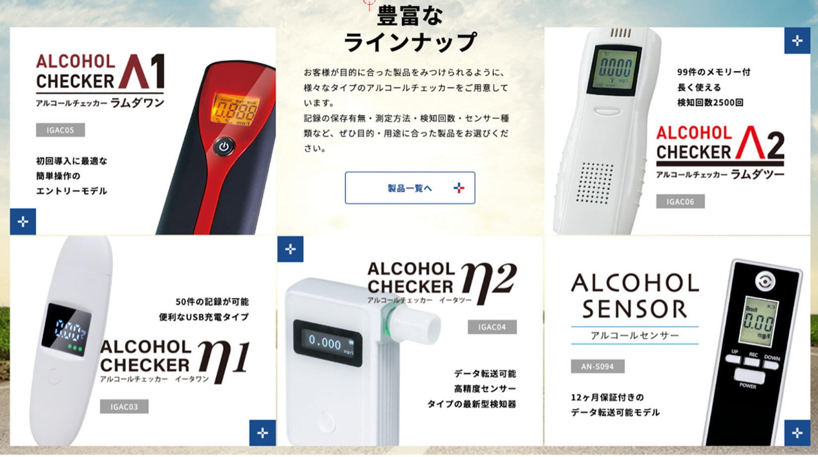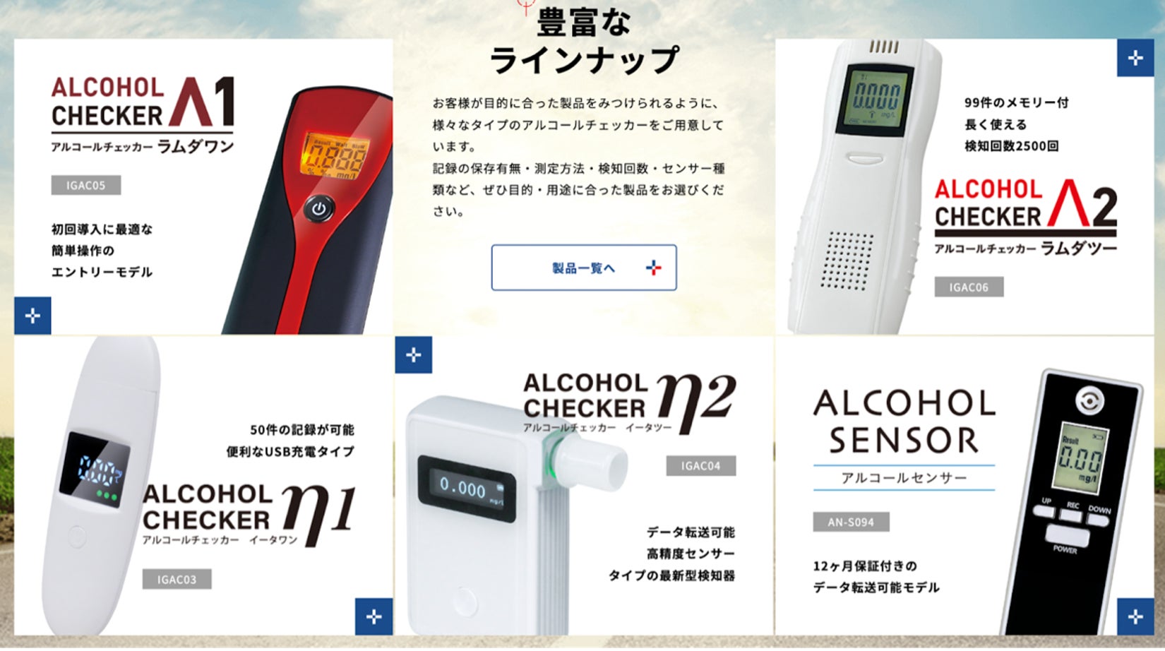 2022年4月の道路交通法改正に伴い、定員が11名以上の白ナンバー車1台以上、または乗車定員に限らず白ナンバー車5台以上を保持する企業に対してアルコールチェックが義務付けられました。需要が高まり品薄の続くアルコールチェッカーに対し、当サイトでは5種類の豊富な製品を最短翌日出荷でご案内。お役立ち情報なども随時発信しています。