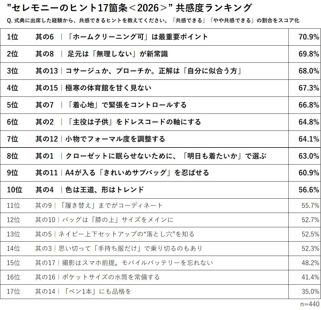 「セレモニーのヒント17箇条<2026>」 における先輩ママの”共感度”ランキングを発表