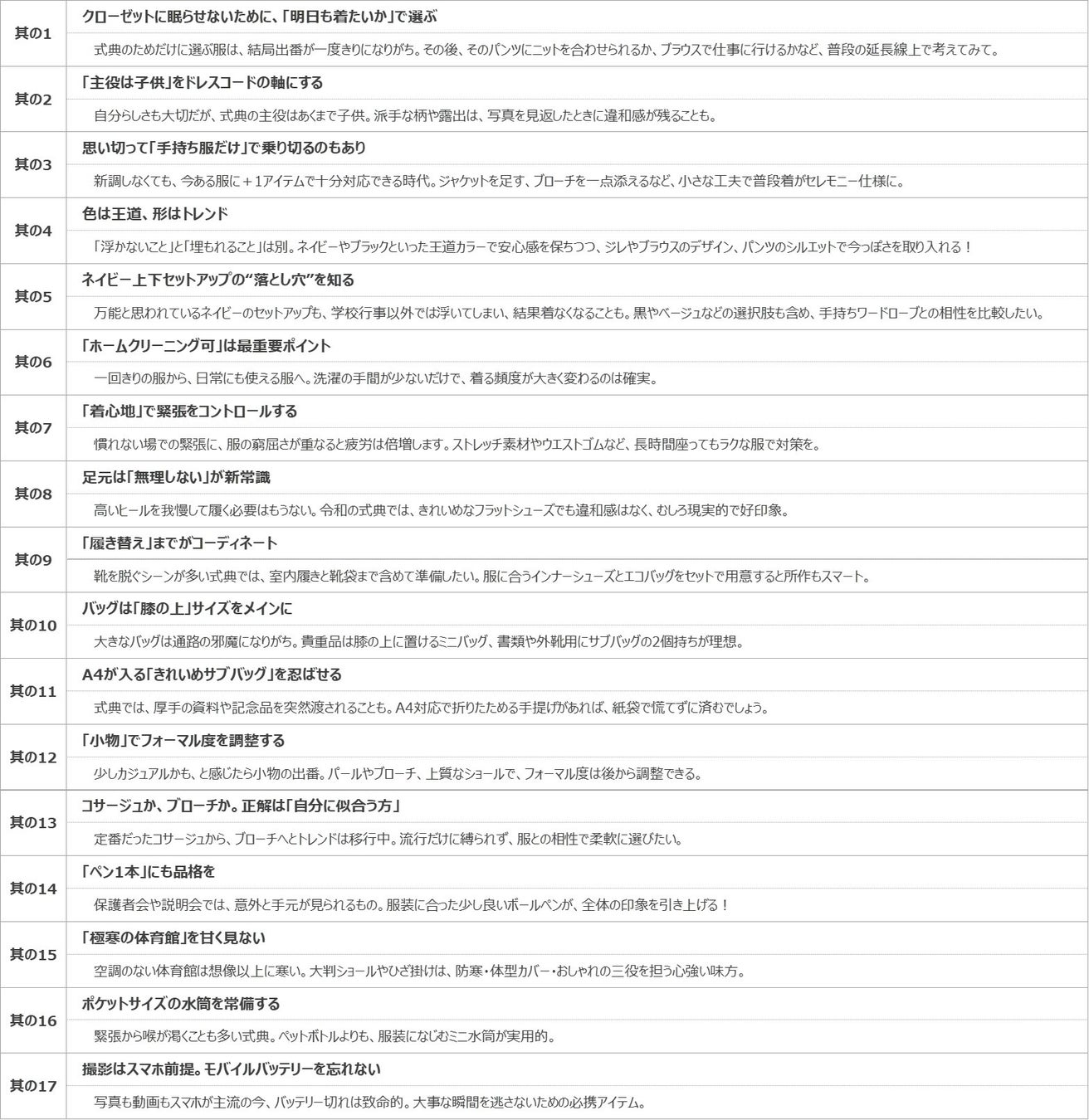 セレモニーのヒント17箇条<2026>詳細
