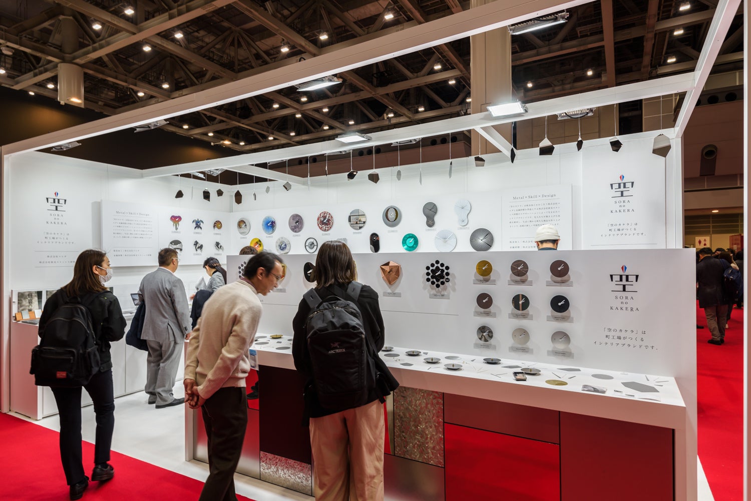 株式会社マエダと新光ステンレス研磨の技術が結集した金属製デザインクロック・ブランド「空のカケラ」の商品を展示しました。ブランドとしては初出展でしたが、多くの方と商談ができ、記念品を探されている方から200台の受注が決まるなど、確かな出展の成果を感じました。今後は展示会を通じてお会いしたお客様とのお取引きとあわせ、オリジナル商品の開発も進めていきます。