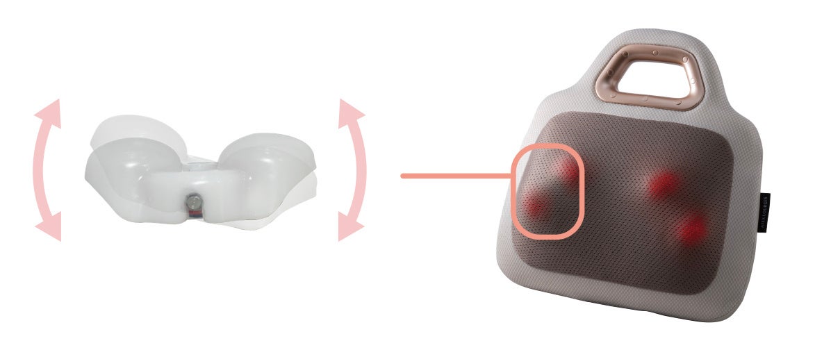 シーソーのように交互に動くもみ玉が、からだのカーブにフィットし、筋肉をやさしくほぐします。心地よい圧でコリをじんわりほぐし、温かさも加わって、毎日のボディケアにぴったりのマッサージクッションです。