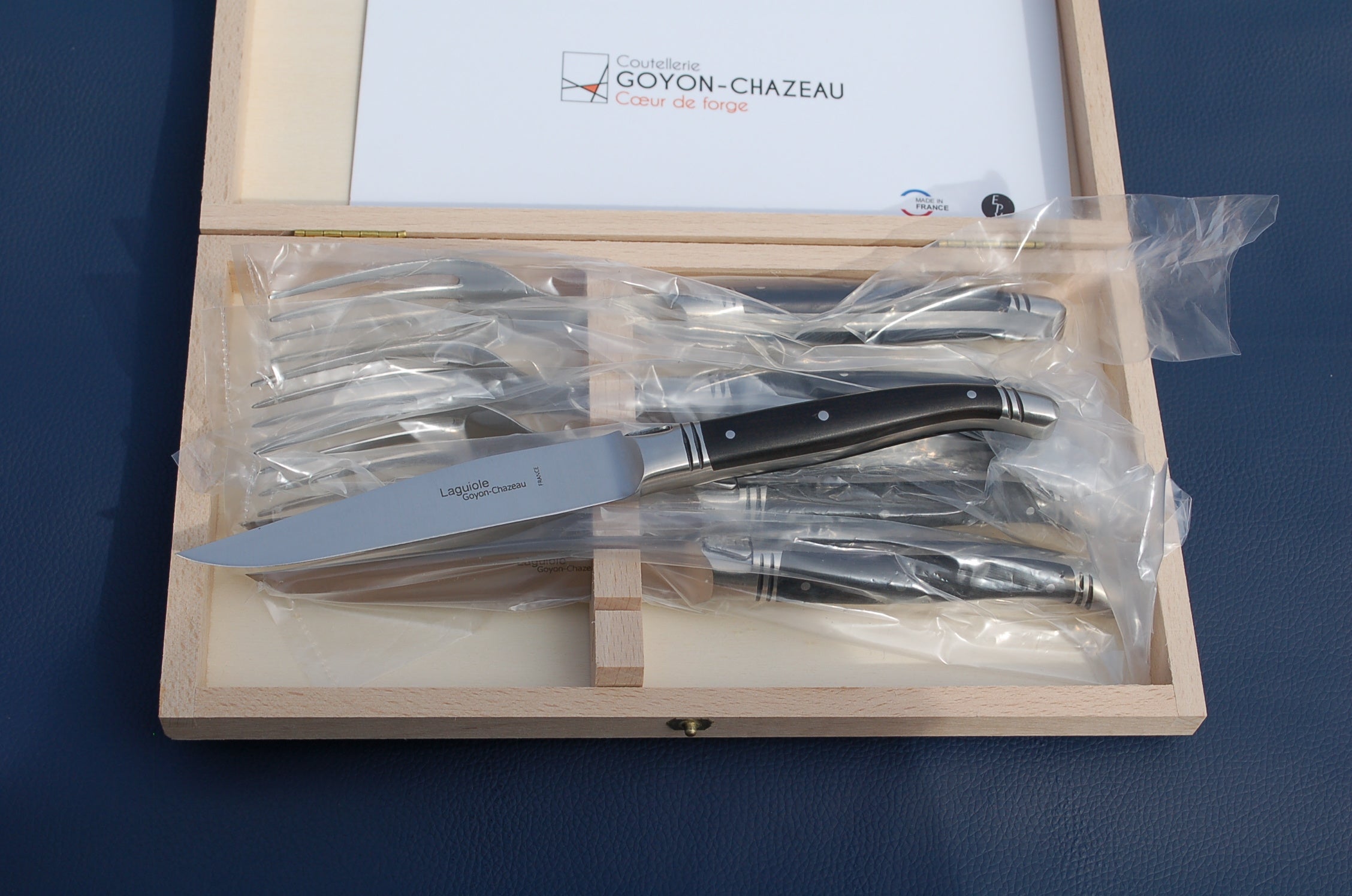 GOYON CHAZEAU 手作りナイフ専門工場のライヨール 職人が仕上げる逸品 ヨーロッパ・ブナの専用木箱に入れてお届け 日本向け特別セット