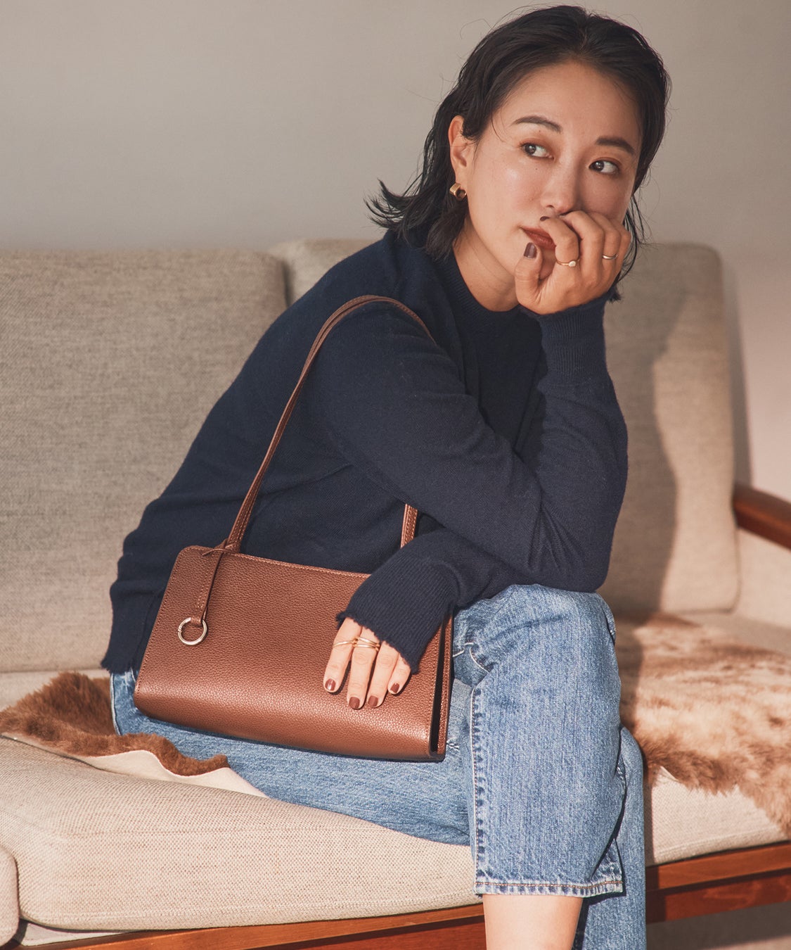 石岡真実さんと一緒に作ったシンプルでスタイリッシュなレザーバッグ。 どんな装いにもすんなり馴染む万能なレザーバッグが出来ました!