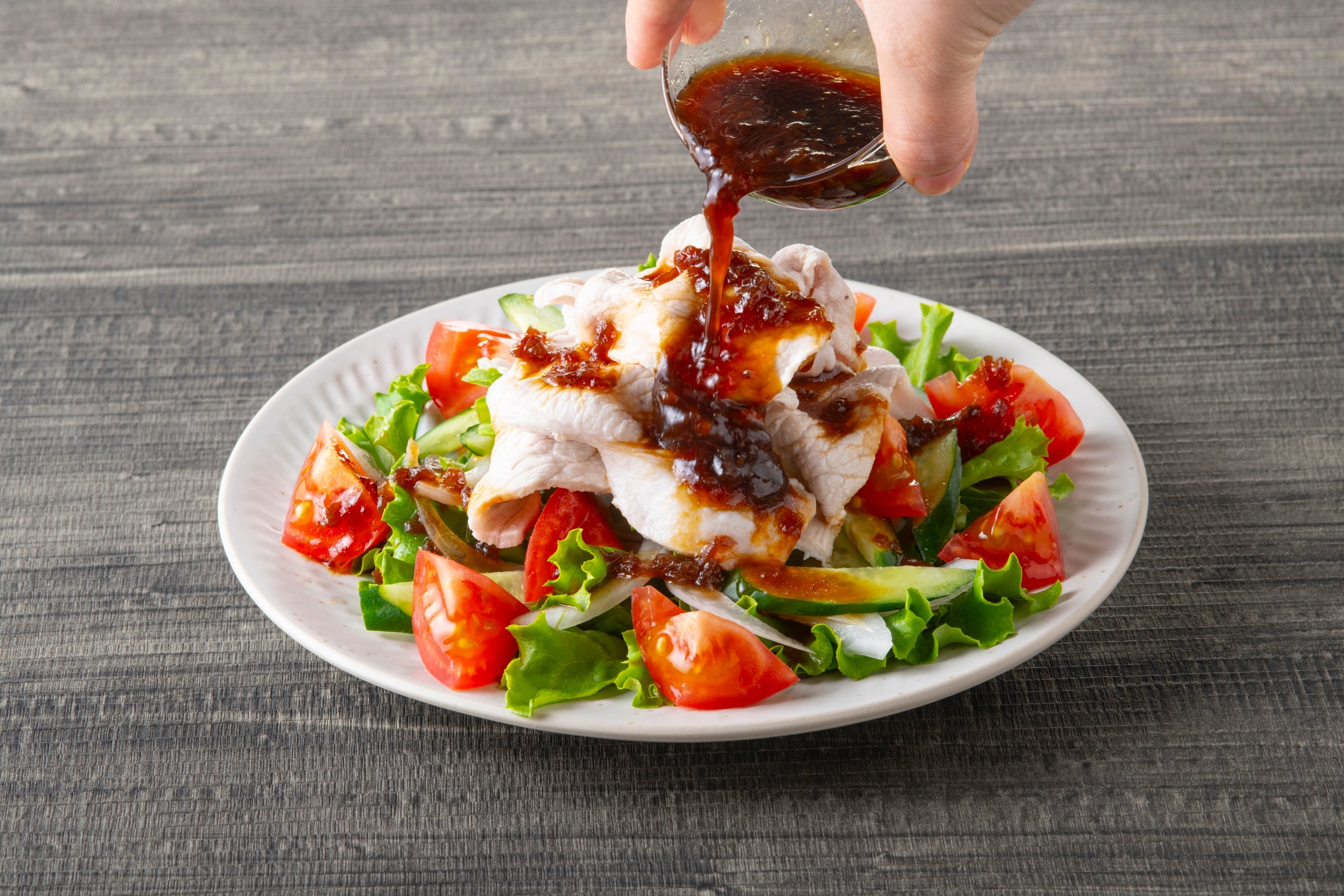 主役は、旬のたまねぎ。 『サラダにかけるだけ』で終わらせないのが、石井食品の提案する“ごちそうドレッシング”です。冷しゃぶ、グリル野菜、蒸し鶏のソースとしても使えるほか、夏に向けて冷や麦や蕎麦のつけダレ代わりにもぴったり!関連レシピは石井食品のレシピサイト「おイシイレシピ」で公開いたします。