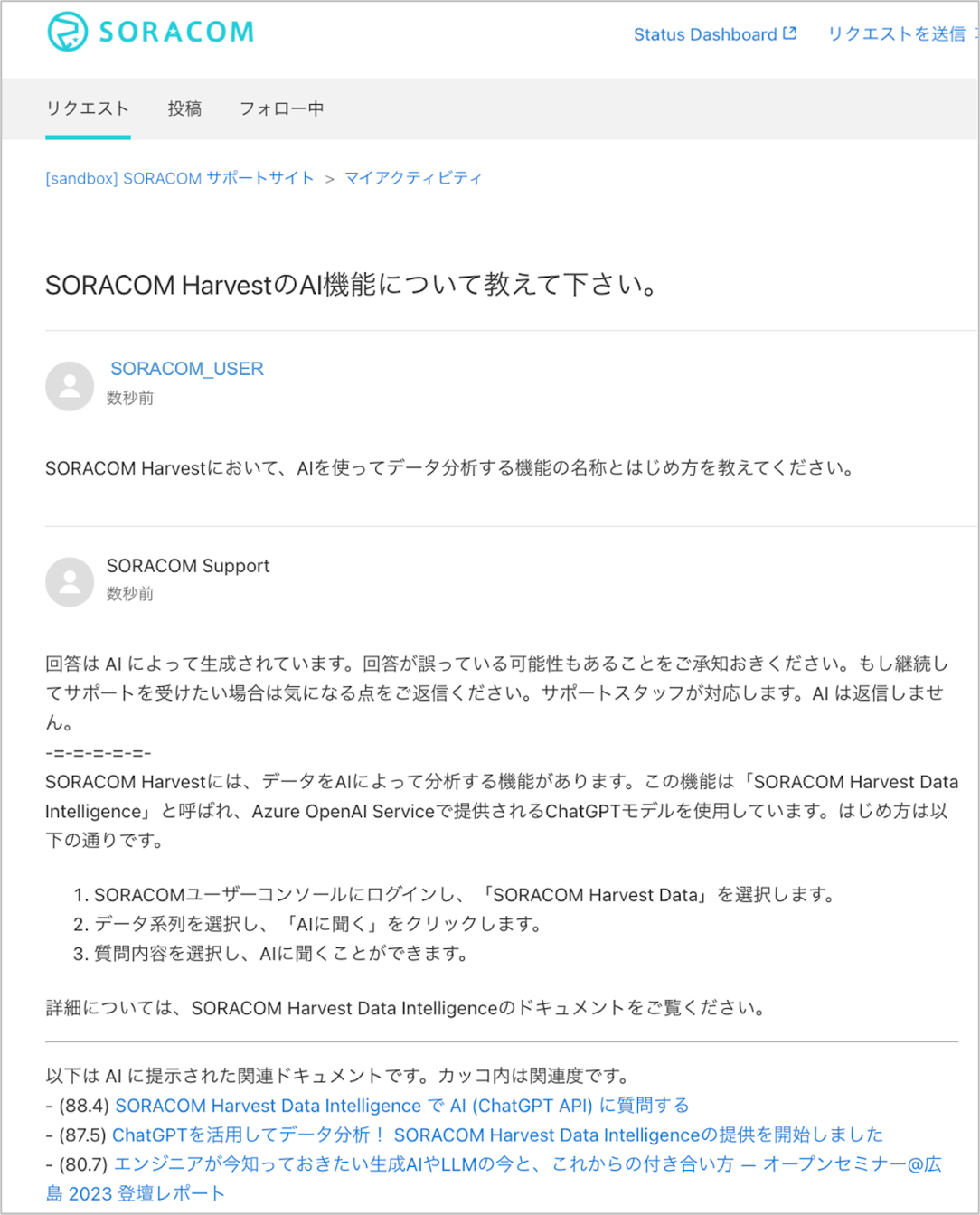 SORACOMサポートサイト、生成AIからの回答を受け取る機能を提供開始