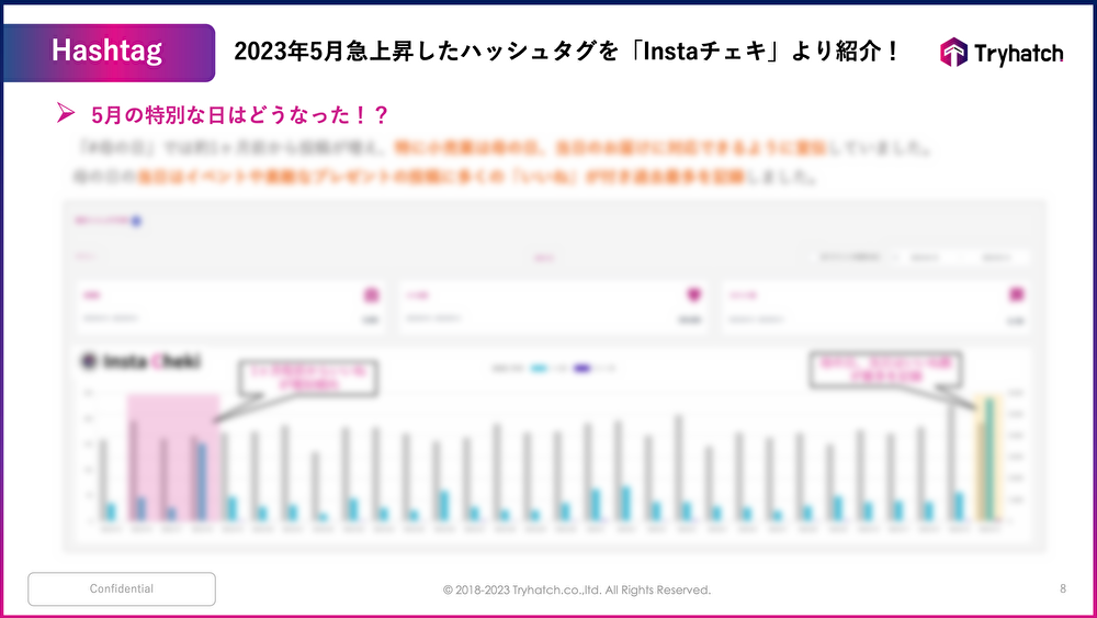 今月は先月に引き続き、5月のイベントハッシュタグの状況について確認!対象の日に向けてリードタイムはどの程度確保すれば良いかなど、参考になる内容となっています。