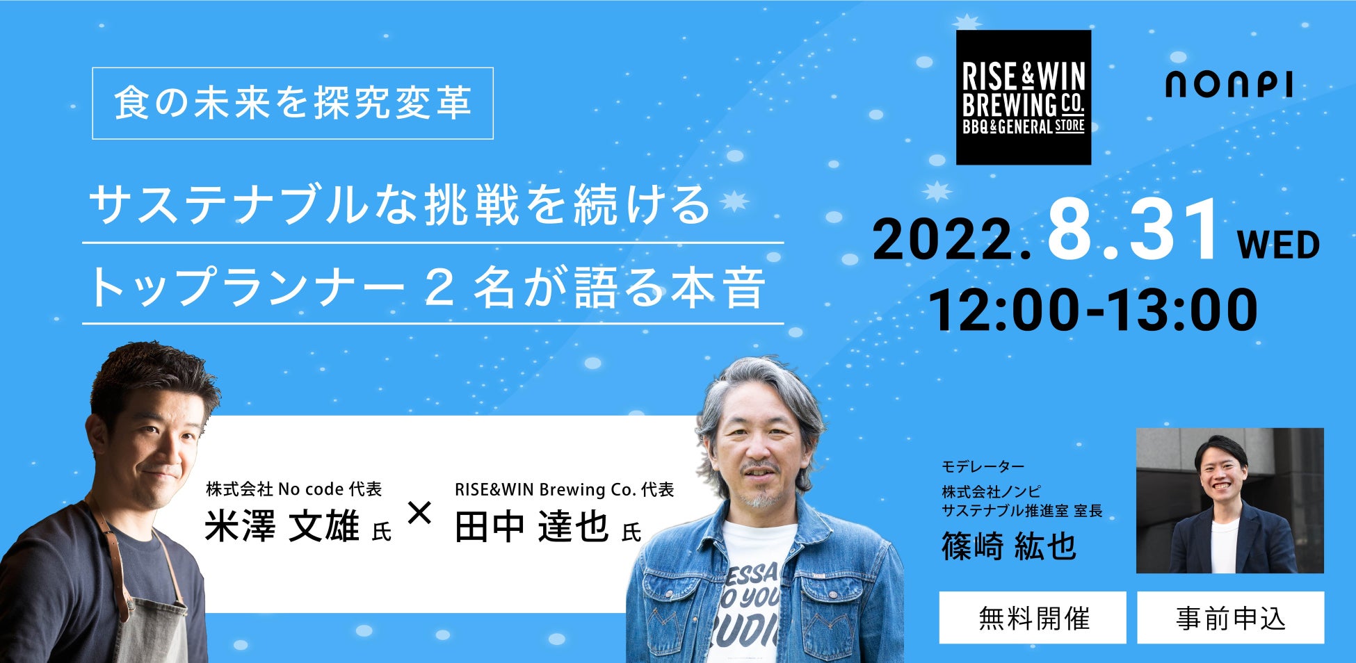 【8/31(水)無料ウェビナー開催】「食×サステナビリティ」ウェビナー第一弾!新時代の食業界を率いるトップランナーが本音で語り合うウェビナーを開催決定