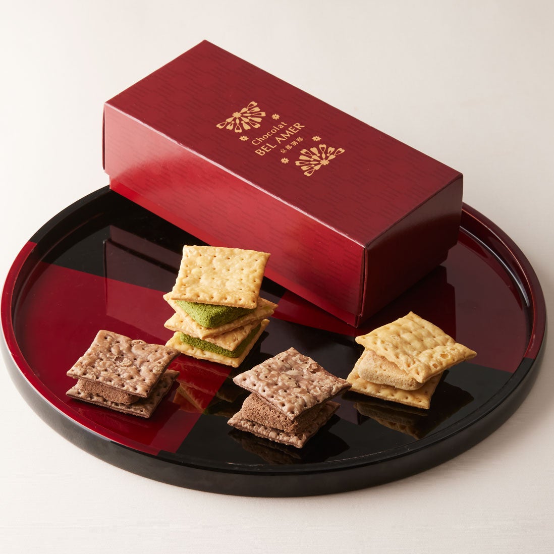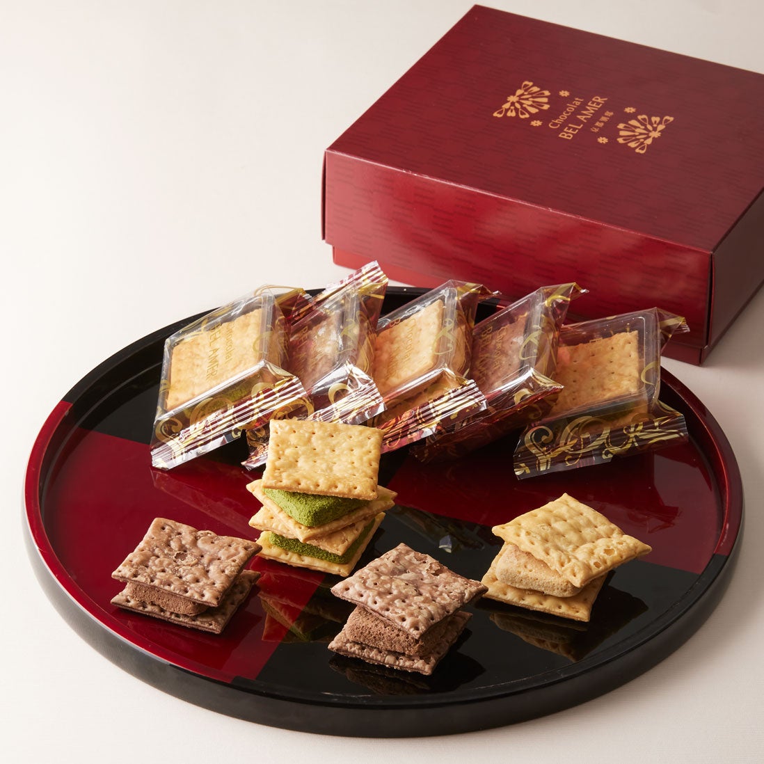 京都産抹茶を使用した爽やかな苦みの焼きチョコをサンドした”抹茶”、りんごパウダーを練り込んだ焼きチョコをサンドした"林檎"、キャラメルとアーモンドパウダーを練り込んだ焼きチョコをサンドした"キャラメル"が登場。