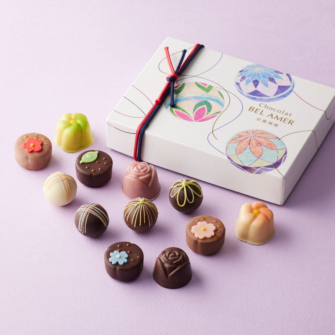 ショコラとフルーツや金胡麻、お茶などを組み合わせ、和素材が引き立つ全12種の味わいが出来上がりました。