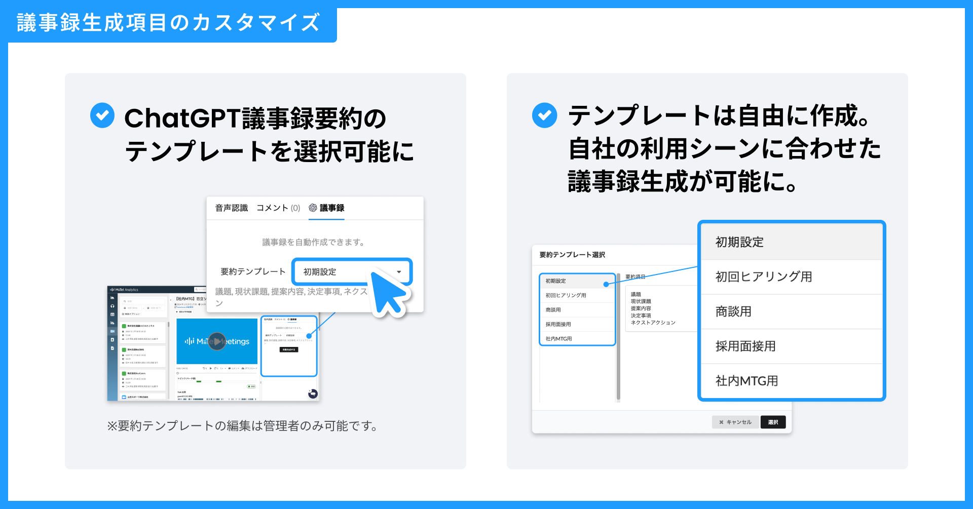 「MiiTel Meetings」ChatGPT議事録テンプレートのカスタマイズ機能を追加