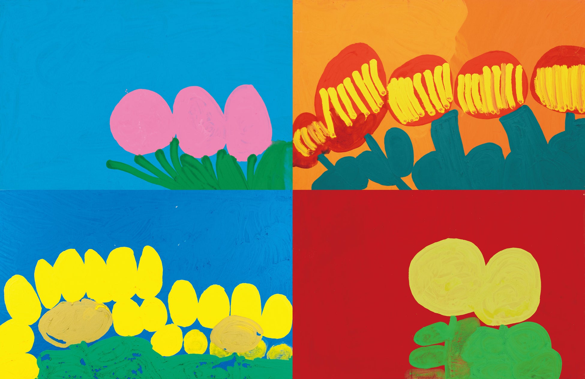 大胆な画面の構成と筆の運びとは相反し、温かみと優しさを感じさせる作品の数々。本展では、これまで福井氏が描きためてきた作品のうち、約20作品を展示し、ギャラリーを鮮やかに彩ります。会場では花がモチーフの作品の他、福井氏の手から生まれる「福井フォント」と呼ばれる作品もご紹介します。