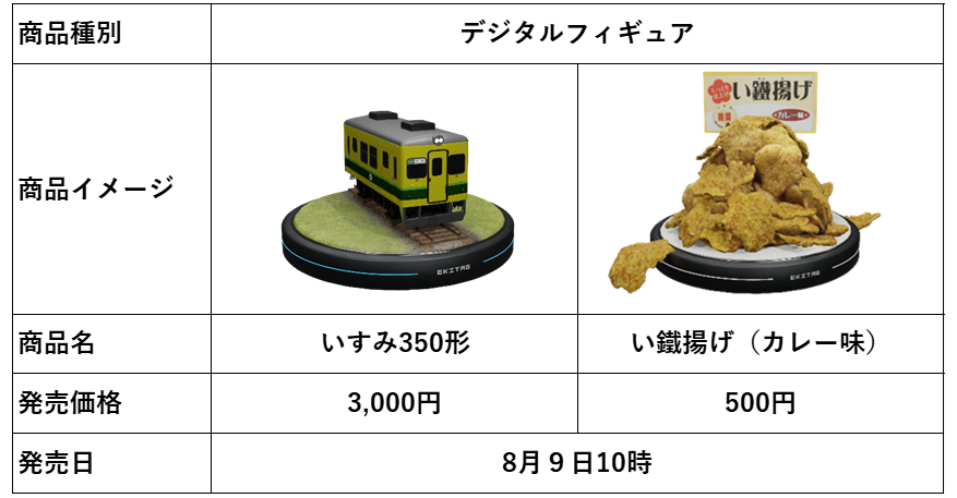 8月9日10時よりいすみ鉄道の車両「いすみ350形」や千葉県優良県産品にも選定されたオリジナル商品「い鐵揚げ」を3Dモデル化し、NFTとして販売を開始いたします。