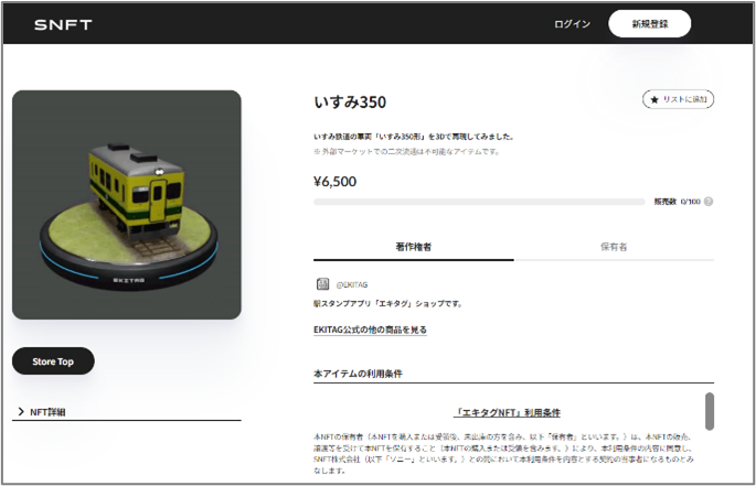 NFTマーケットプレイス「SNFT」にて、ご購入いただけます。(URL:https://snft.jp/store/EKI)
