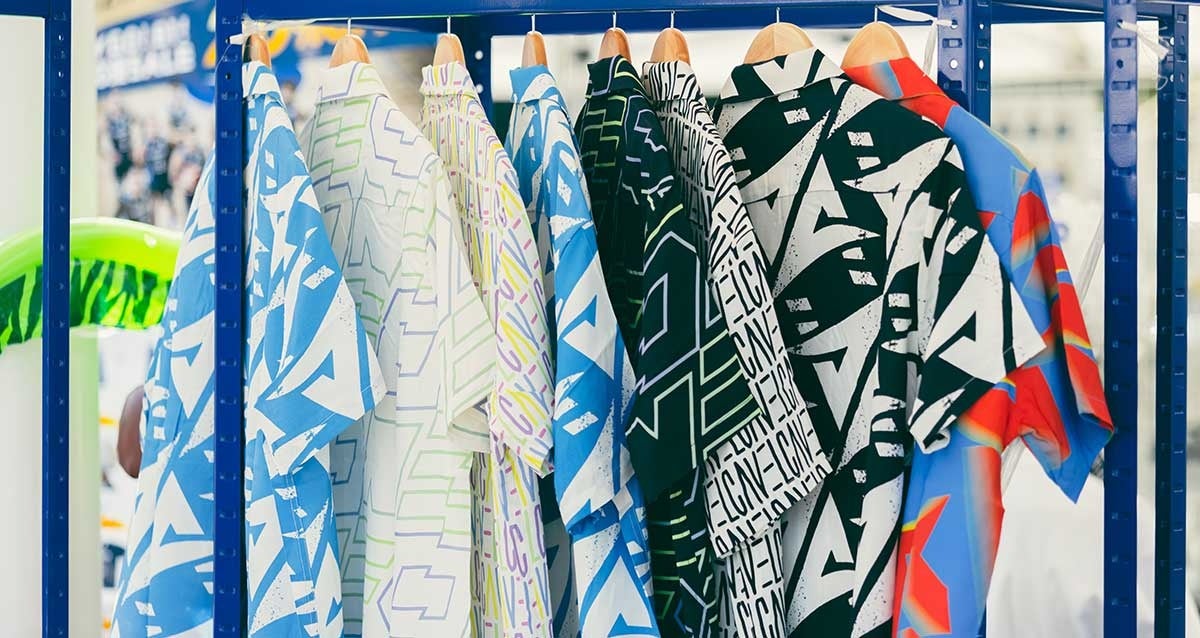 今回、長崎ヴェルカはイベントで販売するための「アロハシャツ」を4デザイン×2色(全8種類)×3サイズ展開し、合計24パターンを制作しました。今までにない企画だったこともあり注目度も高く、商品の希少性も相まって、イベント会場ではとても好評で完売しました。
