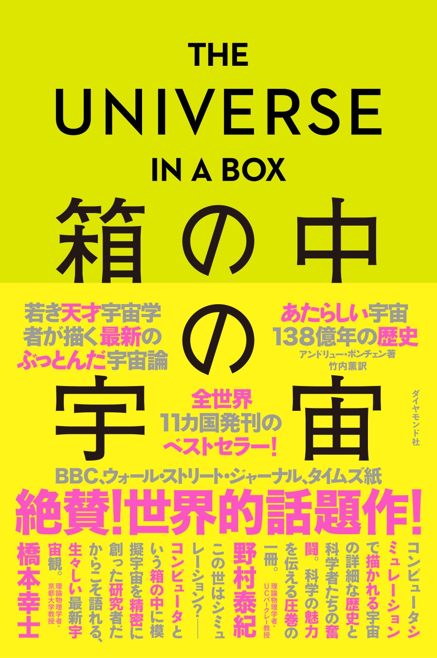 野村泰紀氏、橋本幸士氏絶賛! 11カ国で発刊された世界的話題作『THE UNIVERSE IN A BOX 箱の中の宇宙』が7月17日に日本でも発売されます。本書は、ロンドン大学の宇宙論の教授アンドリュー・ポンチェン氏による初の著書です。日本語版の翻訳はサイエンスライターの竹内薫氏が担当しています。